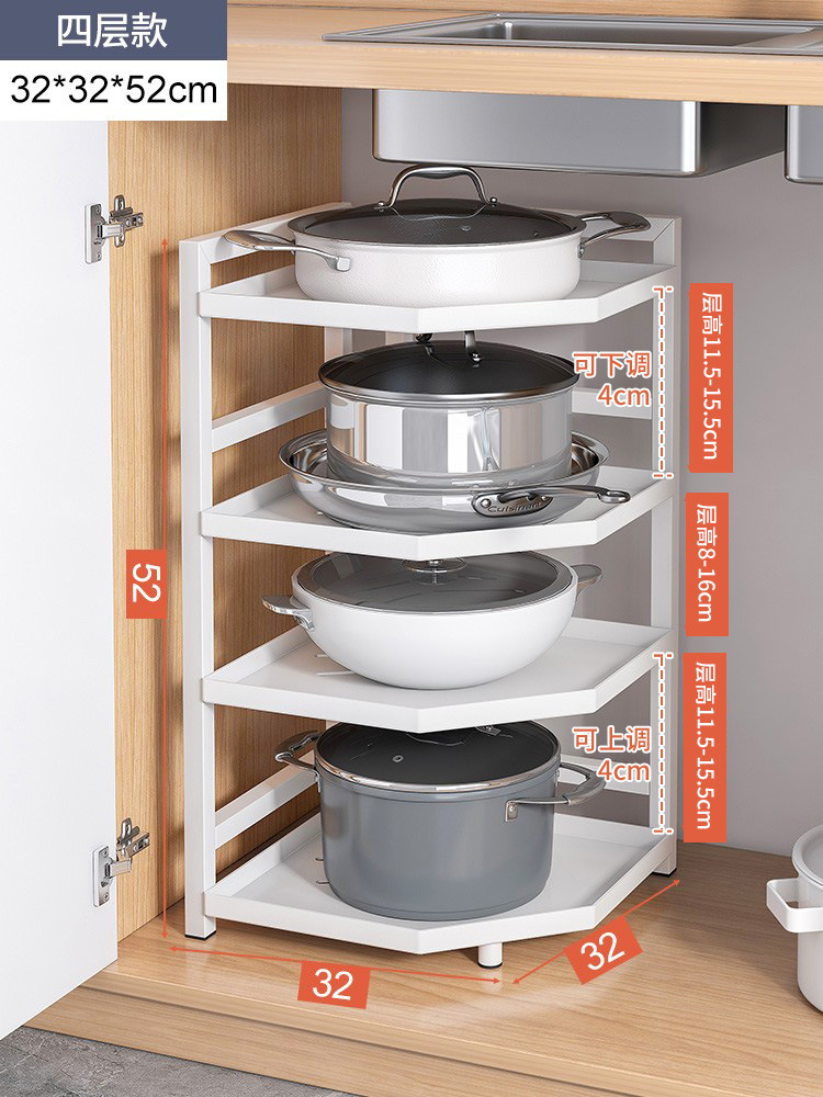 [adjustable layer height] white four-layer 32 x32x52cm: corner design layered storage