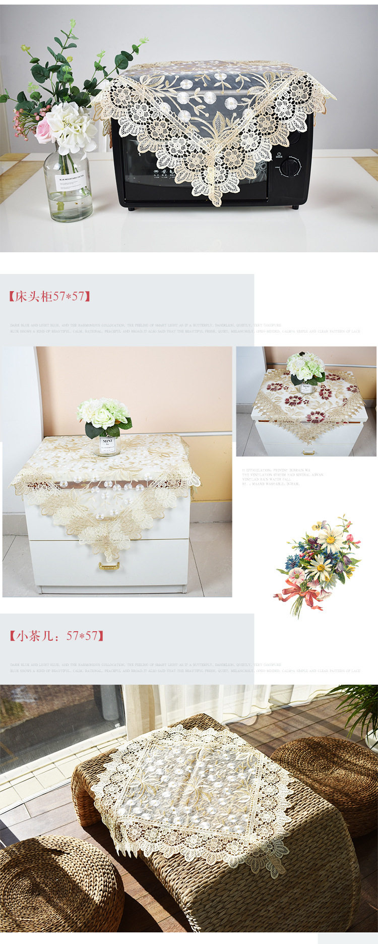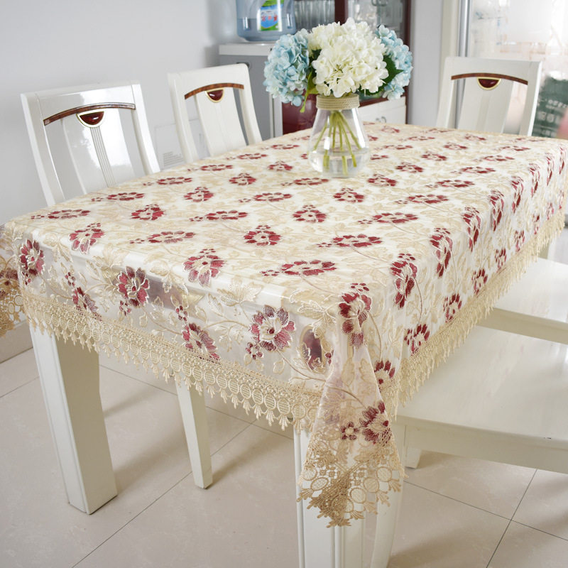 new european-style glass yarn embroidered tablecloth translucent embroidered lace coffee table tablecloth household rectangular table cloth