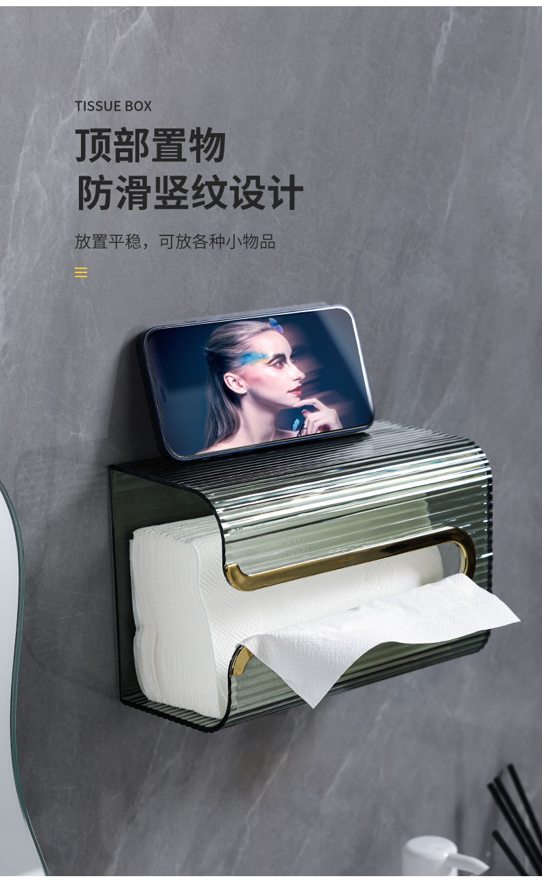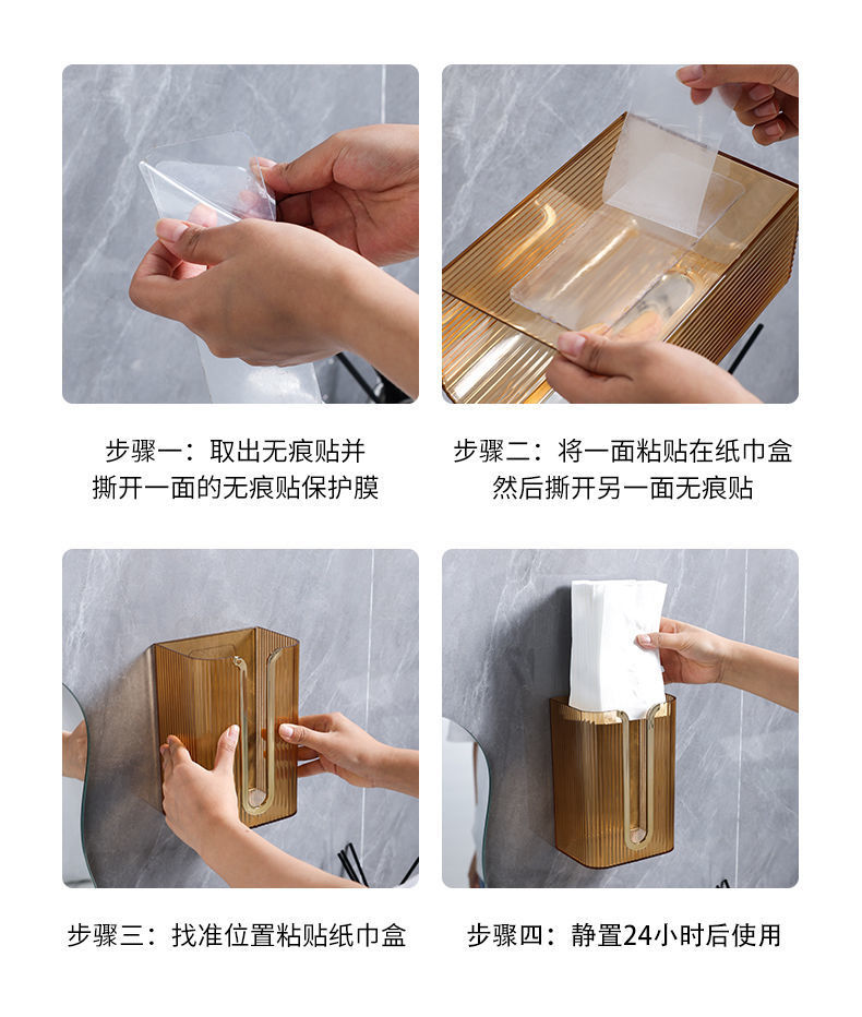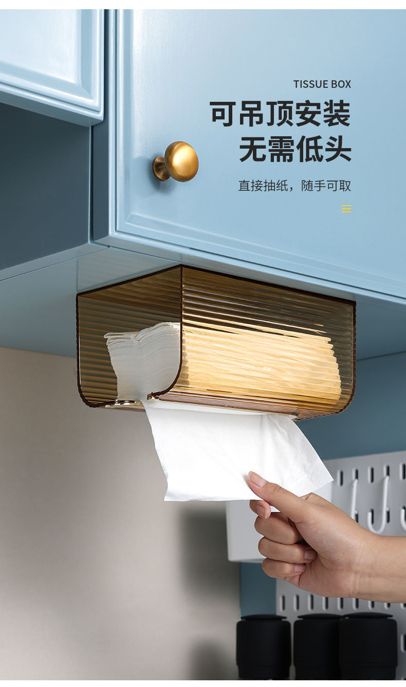 Tissue Box Paper Extraction Box Kitchen Household Living Room Dining Room Towel Creative Wall-Mounted Tissue Storage Box Bedroom Punch-Free