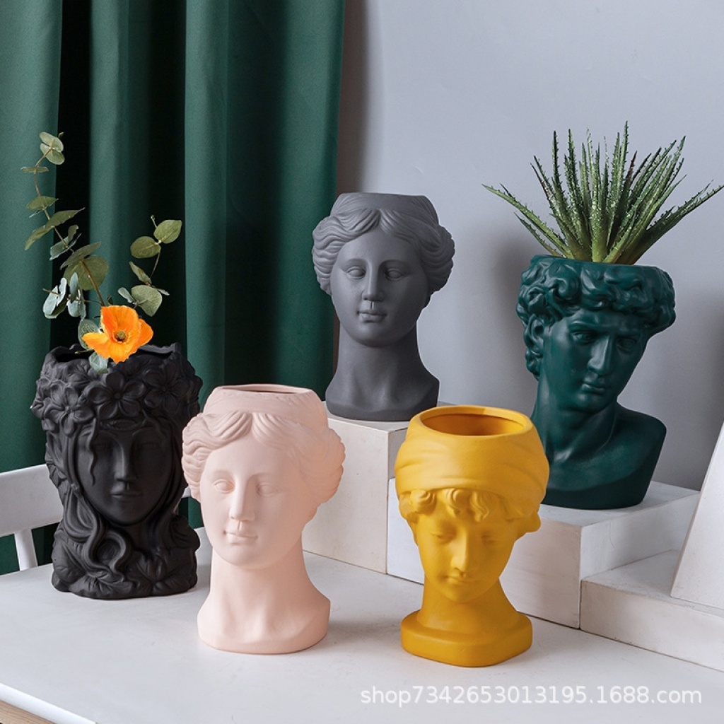 Nordic style ins ceramic flowerpot, minimalist European style head decoration, living room entrance hall, minimalist creative home pot plant