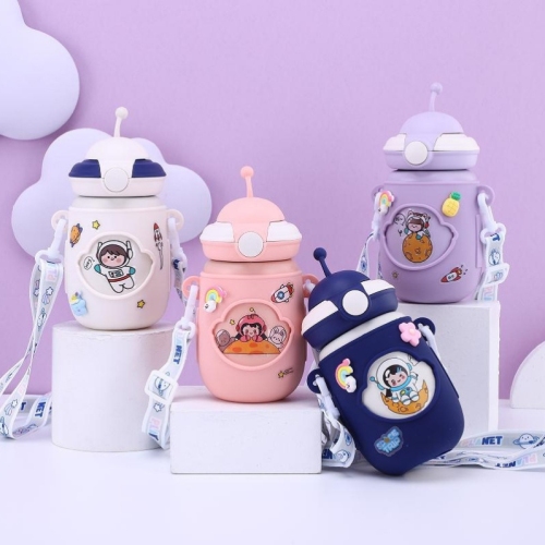 kid's's insulated bottle ufo water cup straw space big belly boys and girls primary school students good-looking strap portable kettle