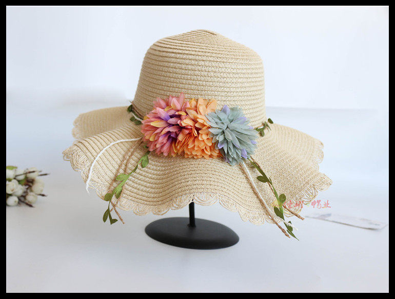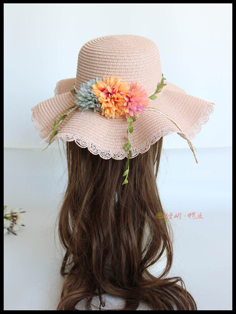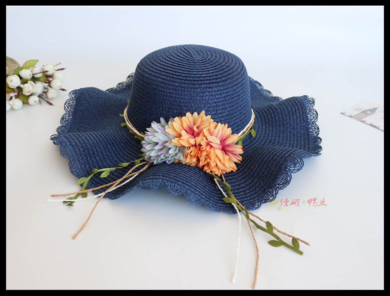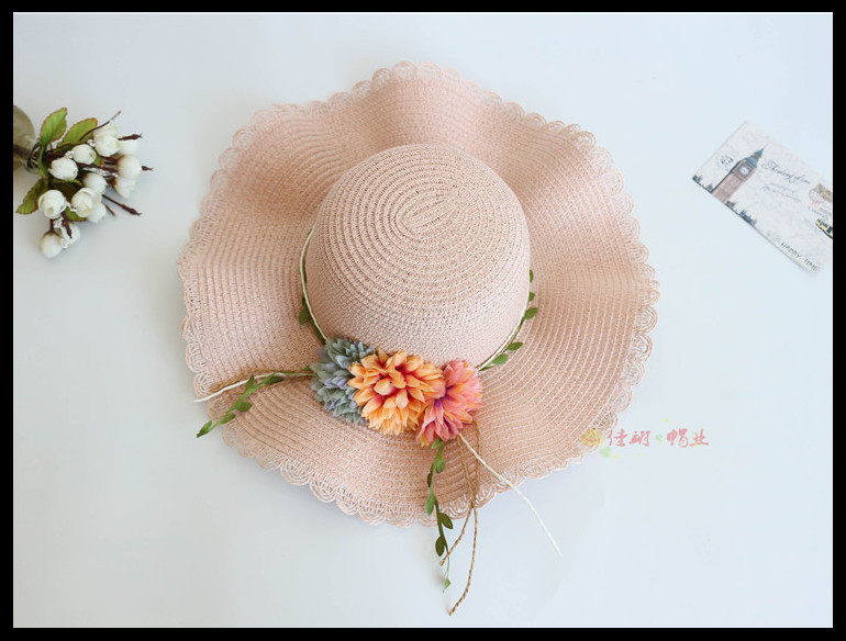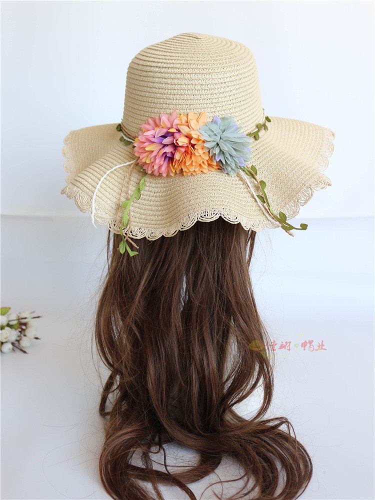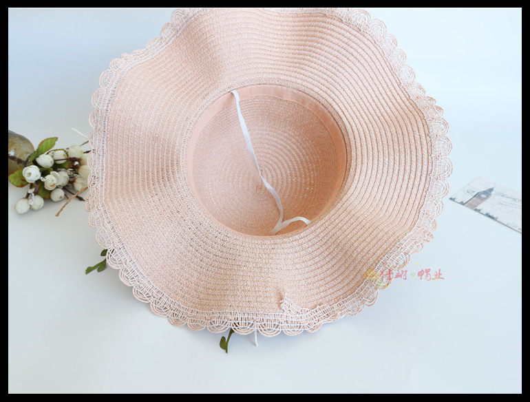 korean style big brim sun protection sun hat female summer beach flower bow tie wave brim straw hat seaside sun hat