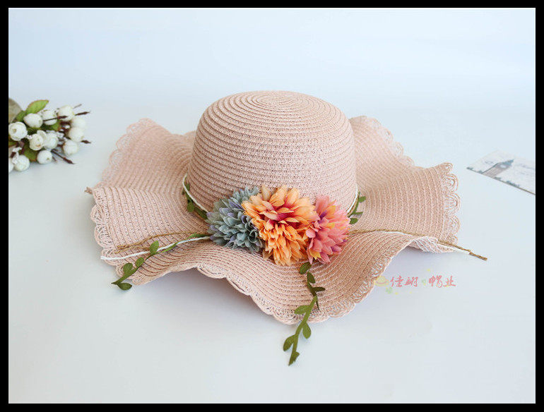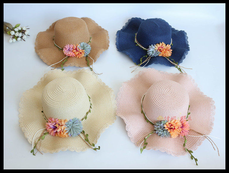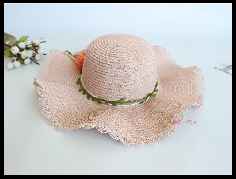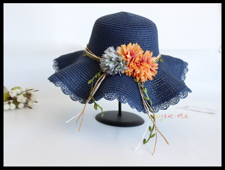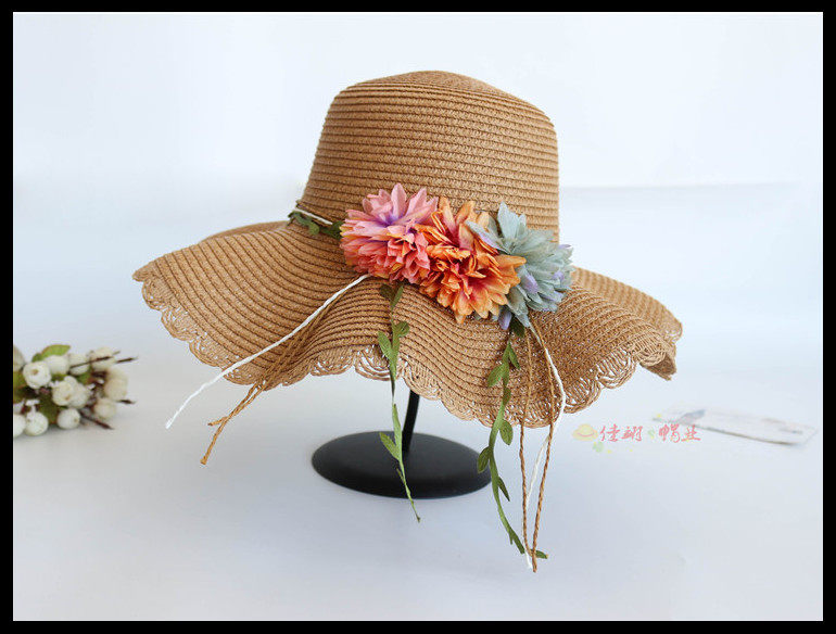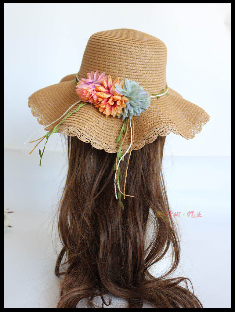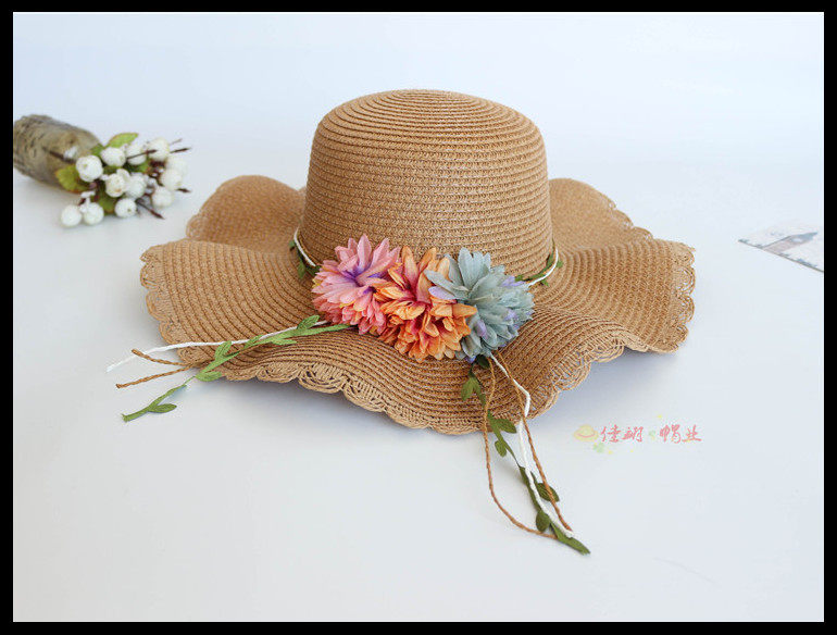 korean style big brim sun protection sun hat female summer beach flower bow tie wave brim straw hat seaside sun hat