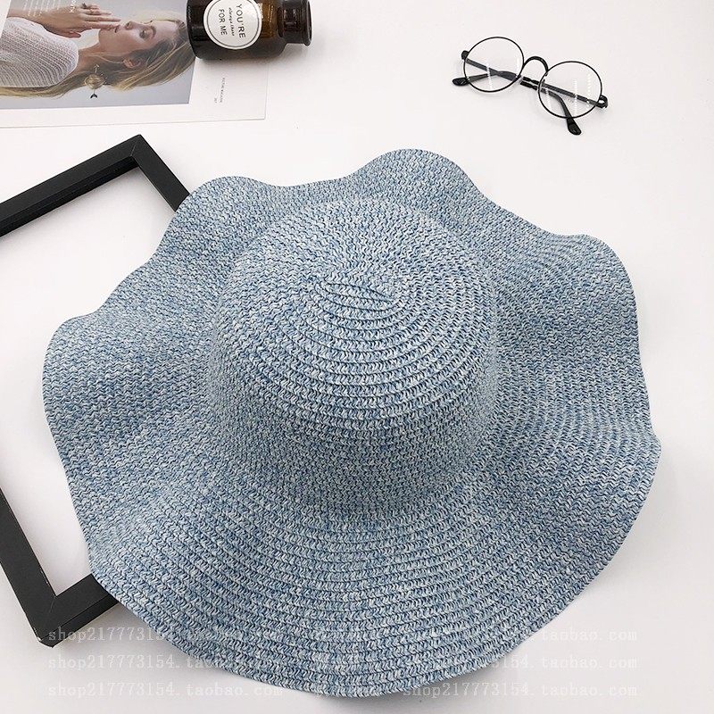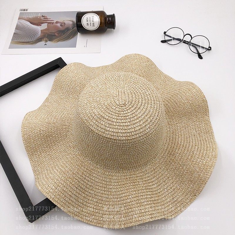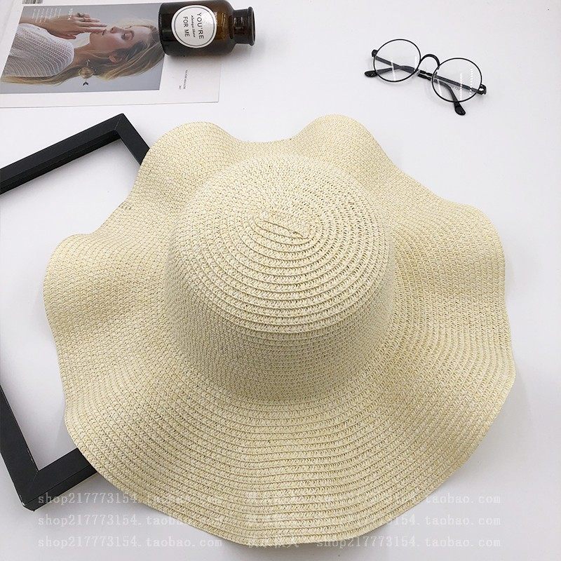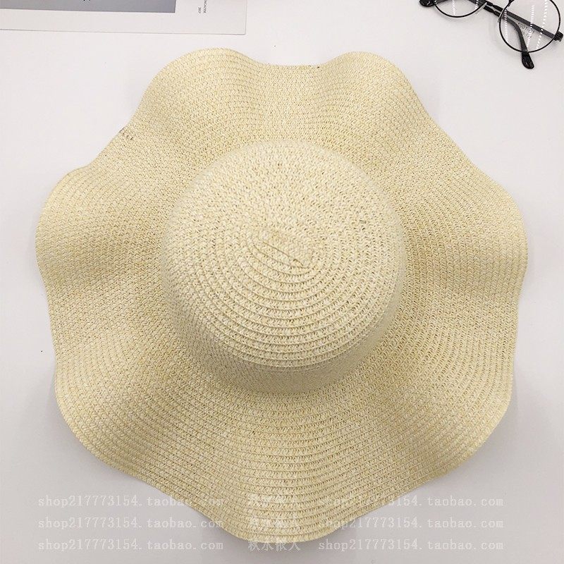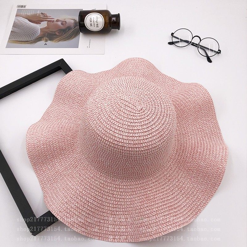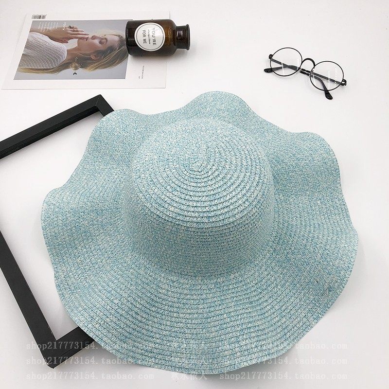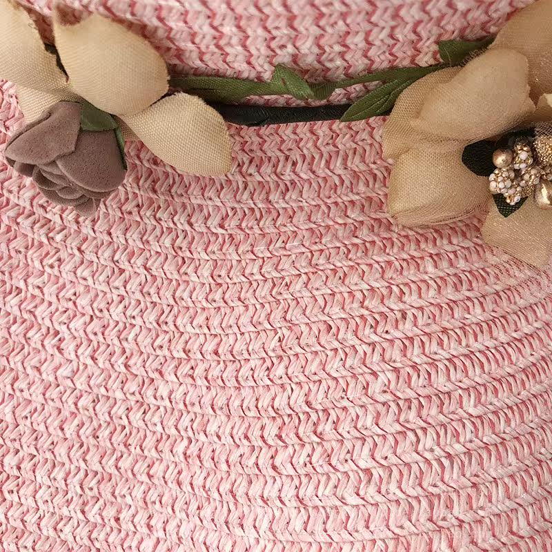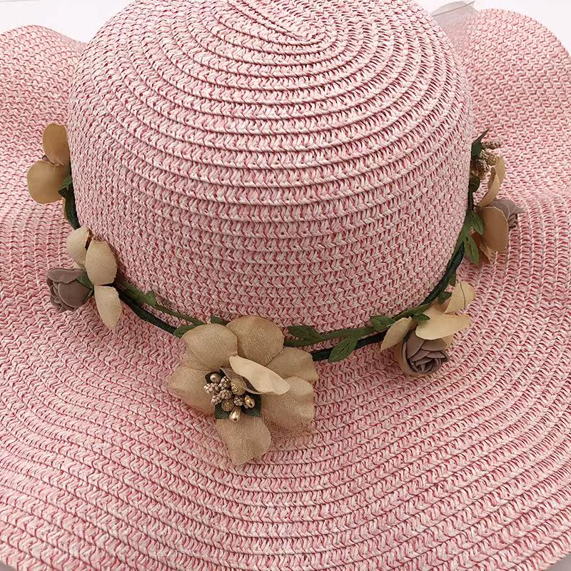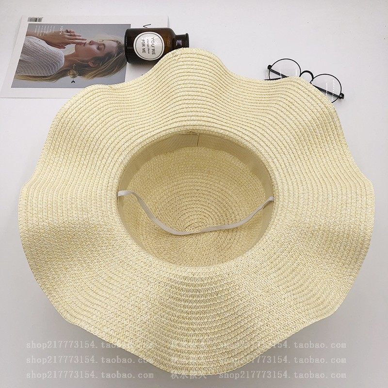 spring and summer big brim wavy edge snow yarn lace-up bow satin exquisite rose garland travel female leisure straw hat