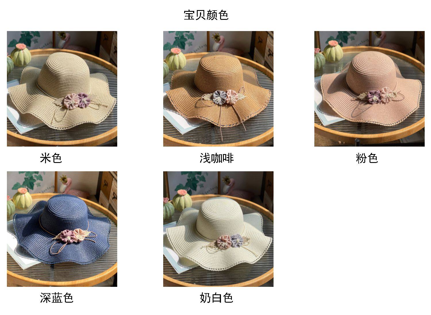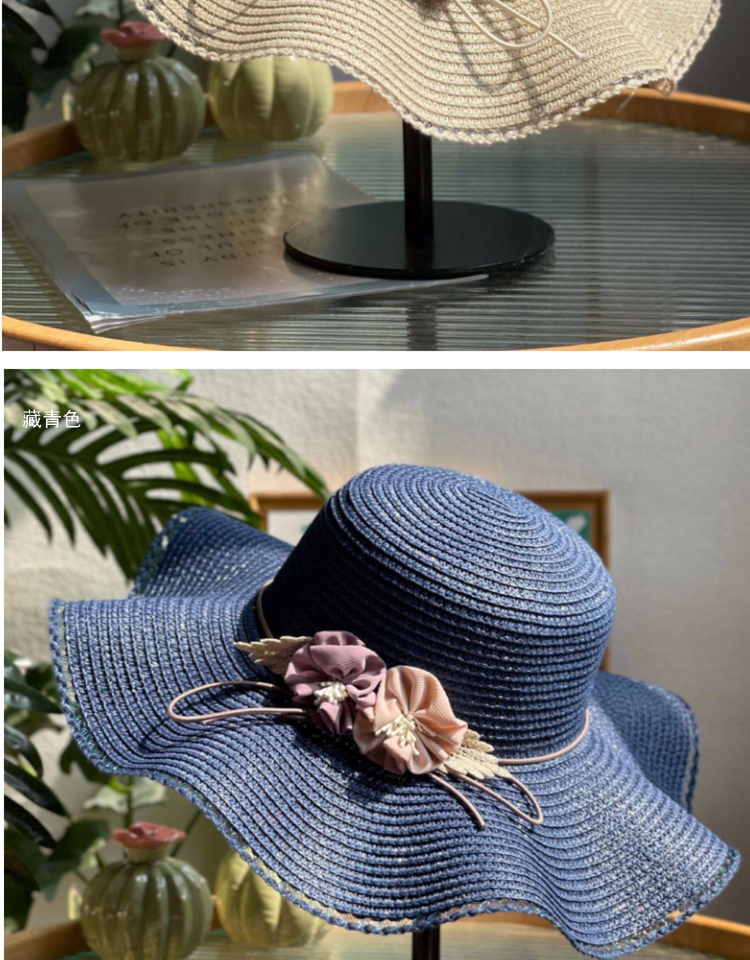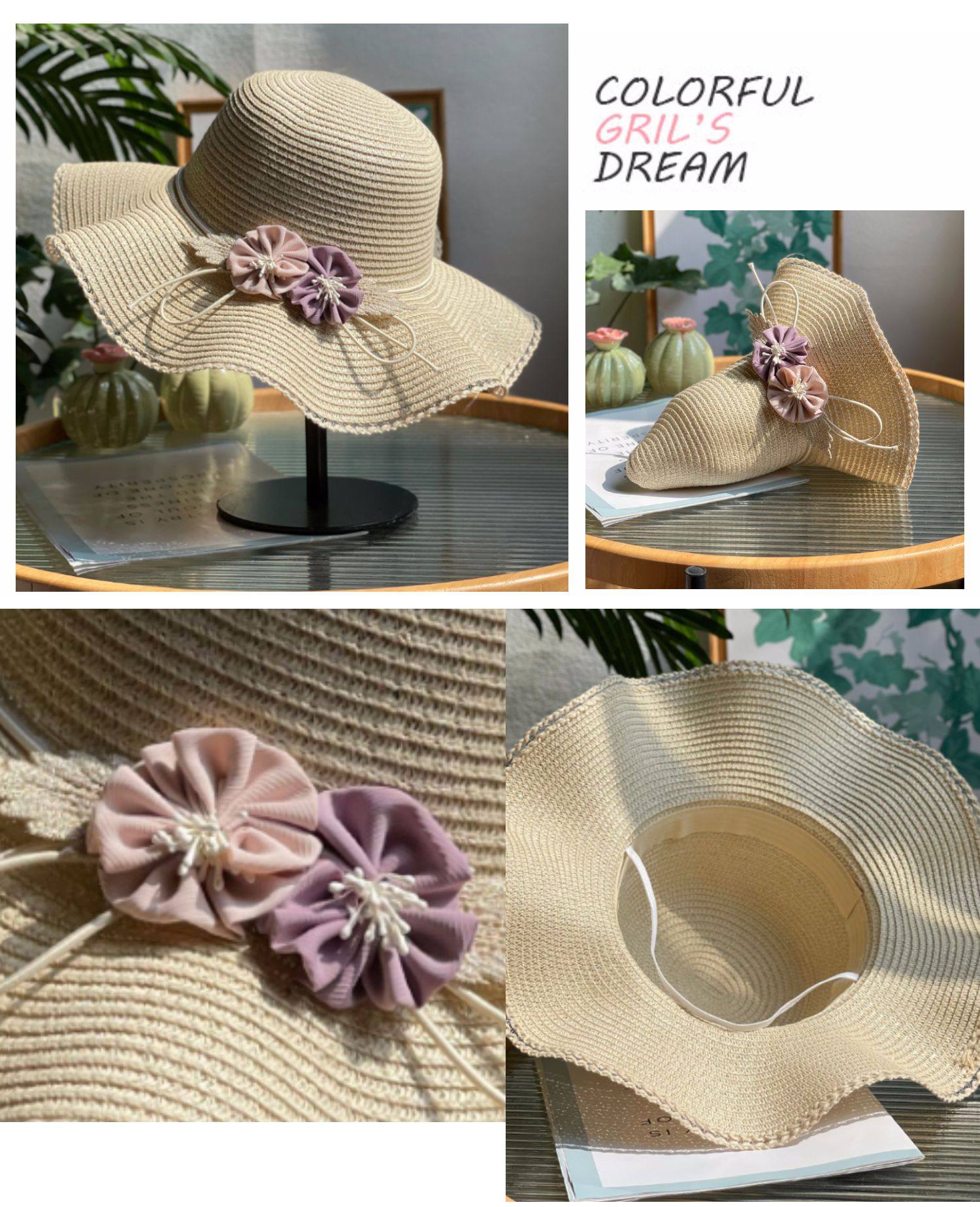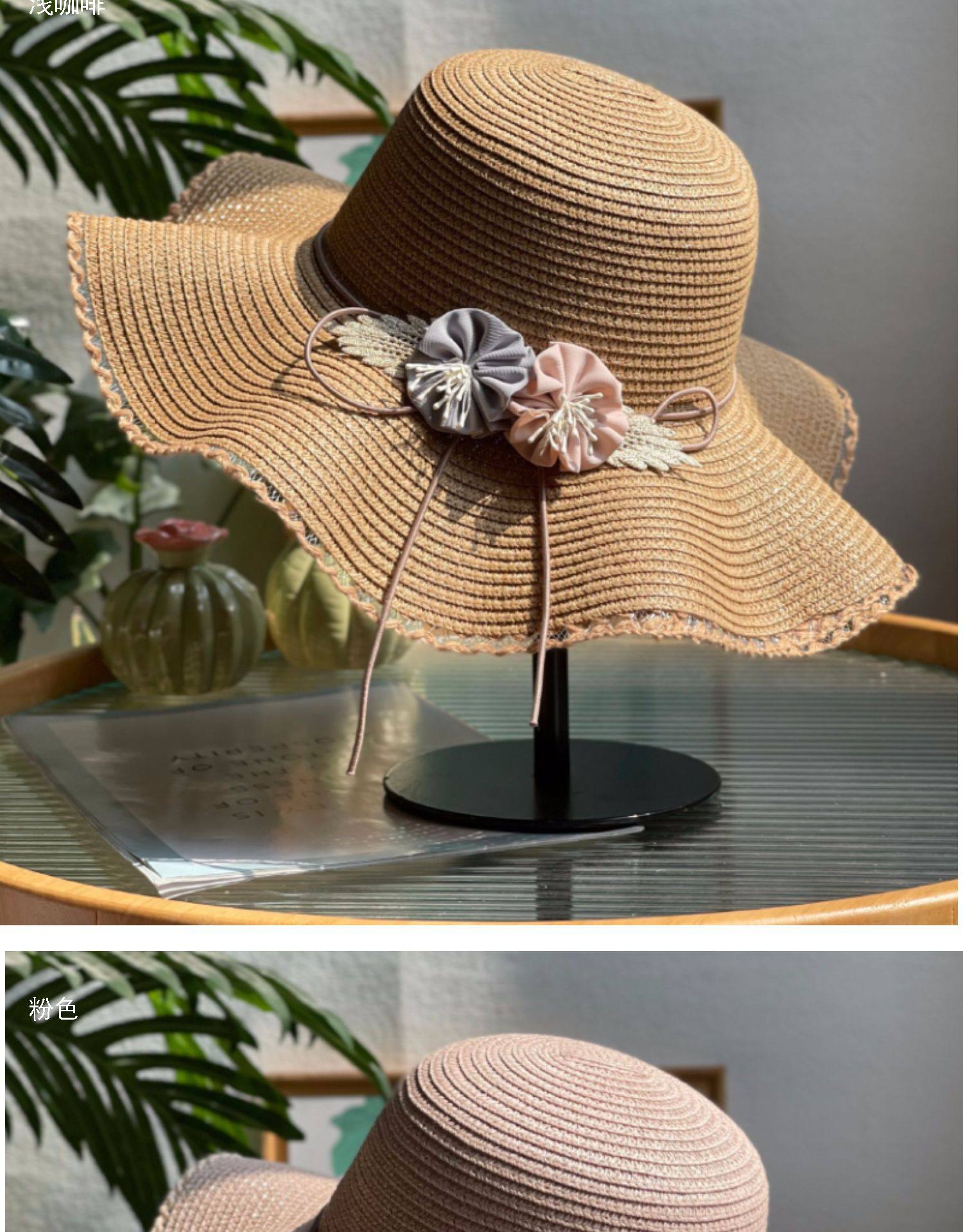 big brim flower straw hat women's sun hat vacation beach hat pastoral style fashion beige sun hat with wooden ears