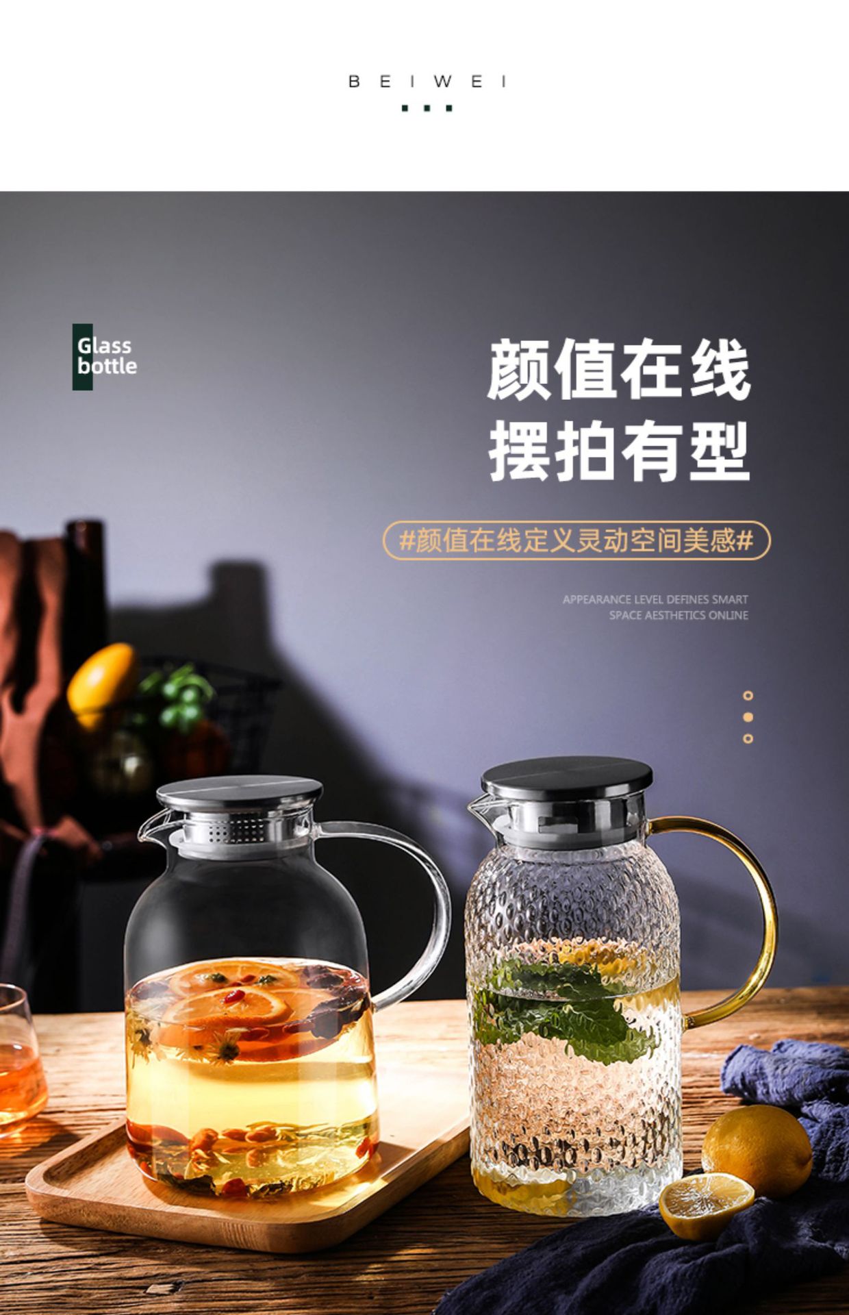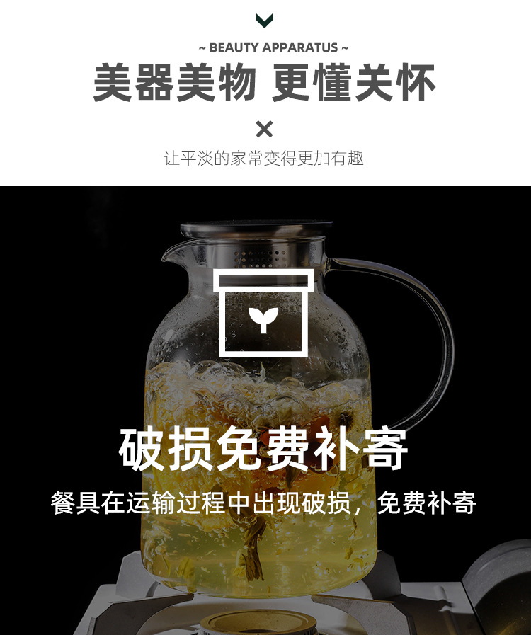 cold water bottle glass high temperature resistant water pitcher large capacity fruit cool tea teapot household cool water pot boiled water jug ice water