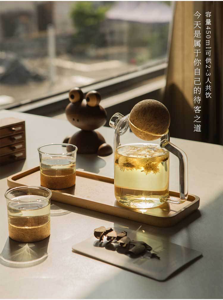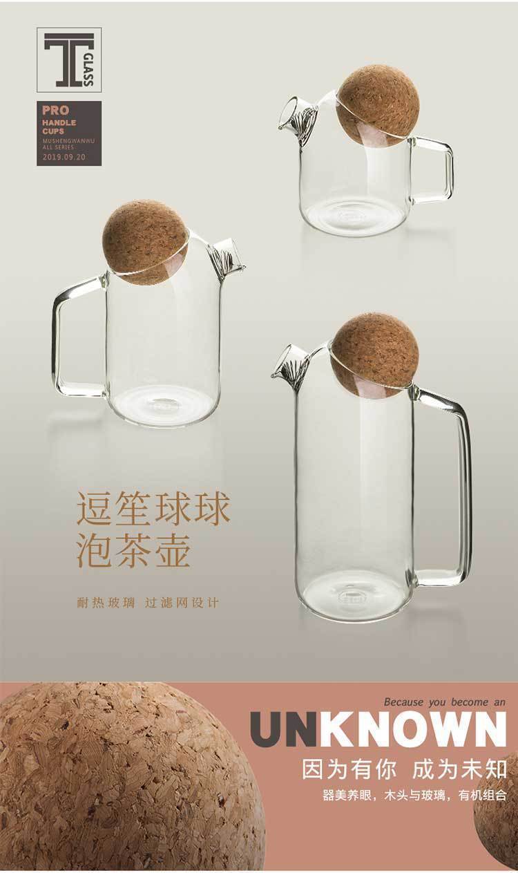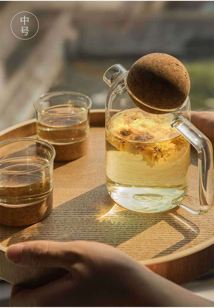 cup glass tea brewing health pot large capacity boil water boil teapot scented teapot juice cold water bottle spherical soft wooden lid