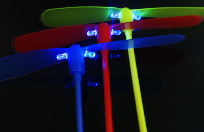 Note: Some of our fans have asked how to make the bamboo dragonfly glow. Now, I'll explain it to everyone. Simply push the rod at the bottom of the bamboo dragonfly gently to push the spiral leaves on top. When the leaves are pushed open, you'll find a circular wire. Twist that wire, and it will light up. If you don't need the glow, twist it again, and it will stop glowing.
