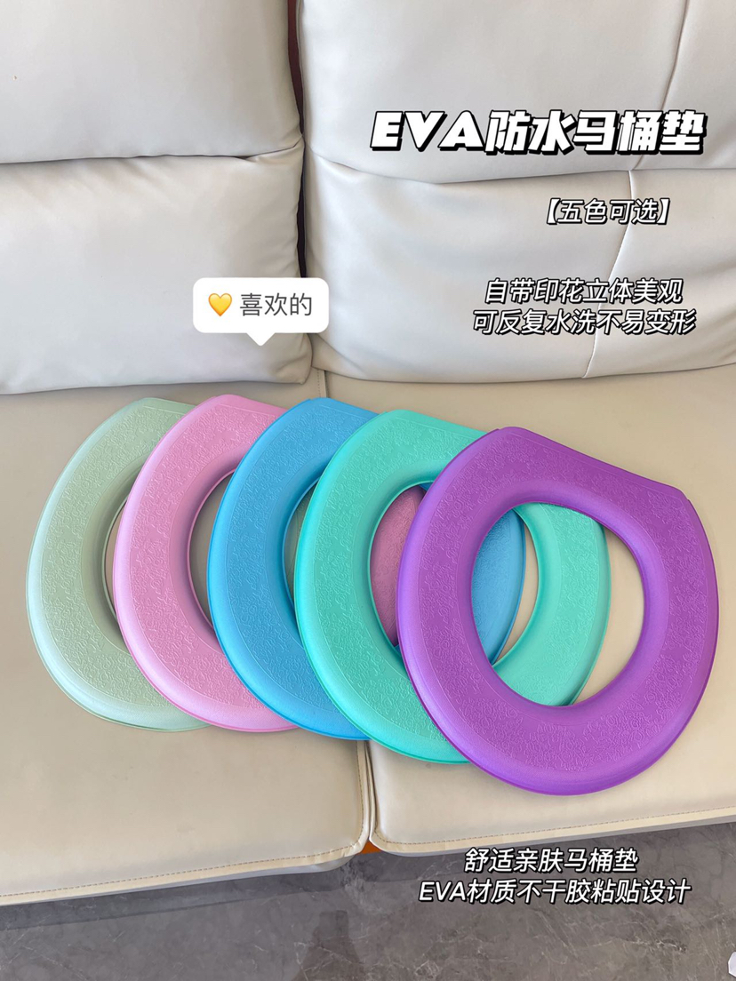 Soft and comfortable waterproof toilet seat cover suitable for all seasons, home use, machine washable and wipe-clean, size 38x42cm, 5 colors available, clear or mixed color package.