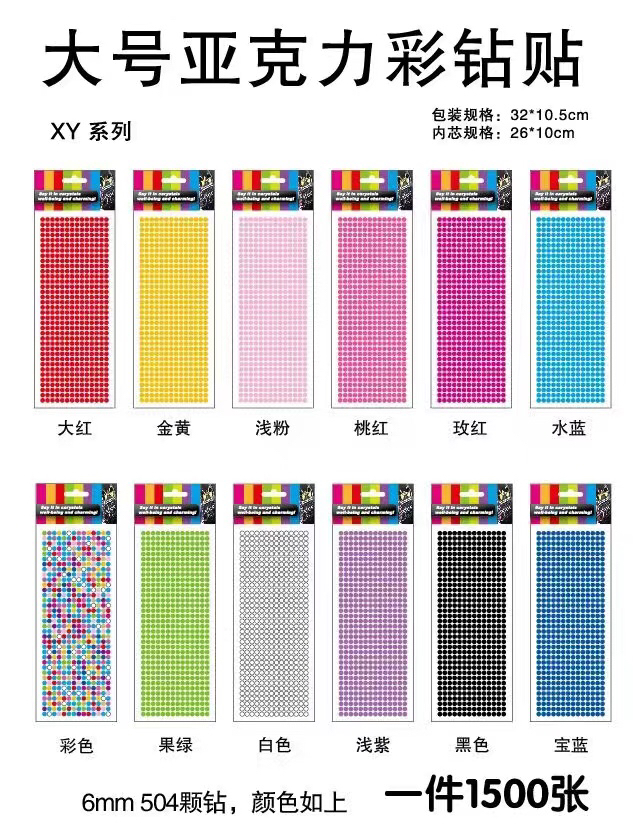 X丫大号亚克力彩钻一件X1500×0.88规格32×10.5,內芯规格26×10Cm有12个款,可混款,每个颜色都很亮爽,每小板有504颗钻