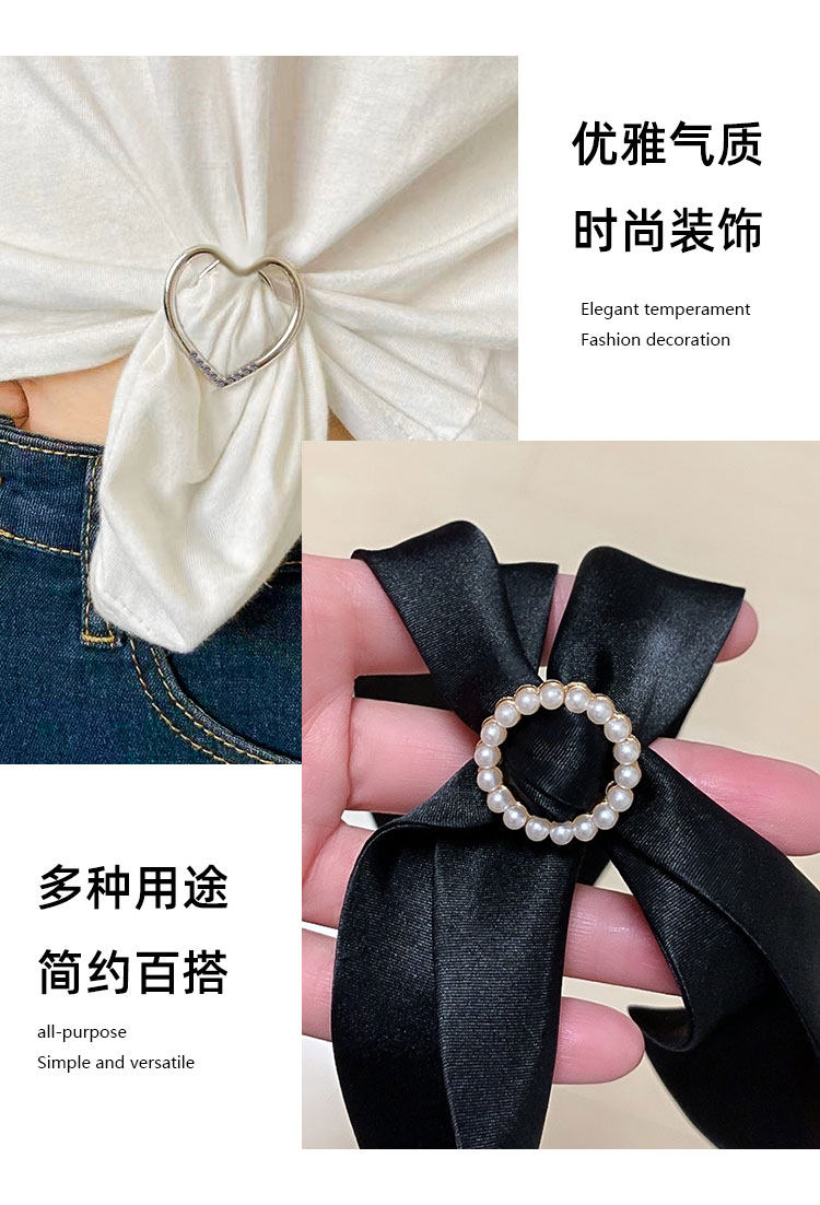 all-match t-shirt clothes corner buckle knotted retaining ring shirt hem fixing buckle high-grade pearl diamond scarf buckle belt buckle women