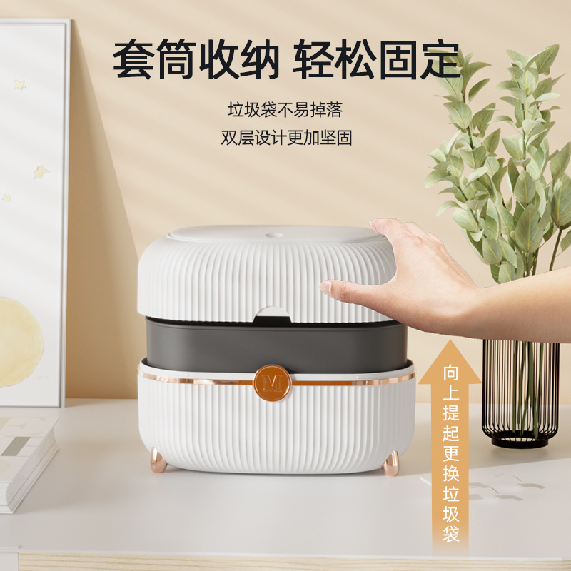 Desktop Creativity Trash Can Bedroom Bedside Storage Bucket Small Cute Mini Office Press with Lid Small Wastebasket