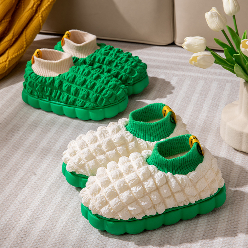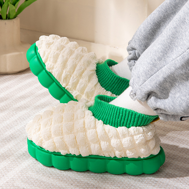 2022 puff cotton slippers women's autumn and winter interior home keep warm outerwear platform heel covered cotton slippers