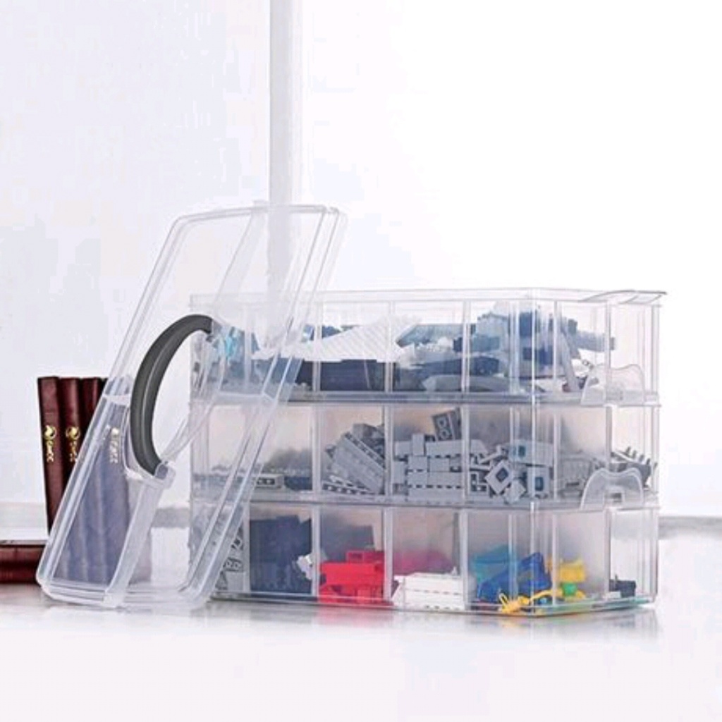 Large multi-Layer Plastic Transparent Storage Box Portable Covered Lego Toy Storage Box Multi-Grid Jewelry Storage Box