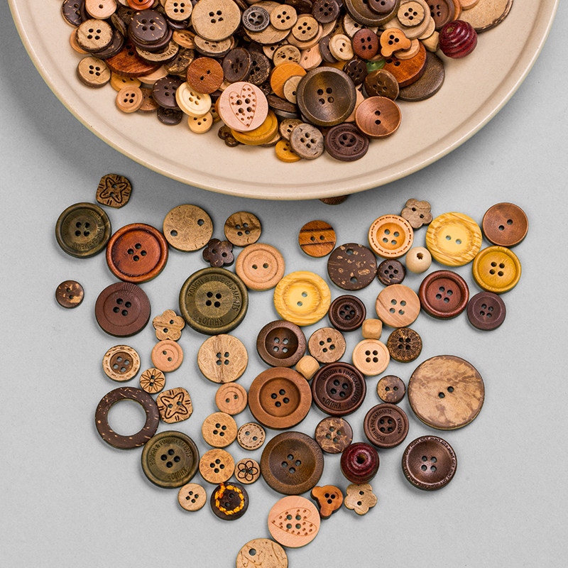handmade diy painting small wooden coconut coconut shell button ethnic retro style wooden round two-eye four buttons