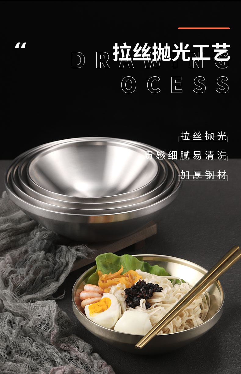 hz473 korean stainless steel 304 cold noodle bowl gold udon noodle bowl fruit salad bowl commercial bowl instant noodle bowl