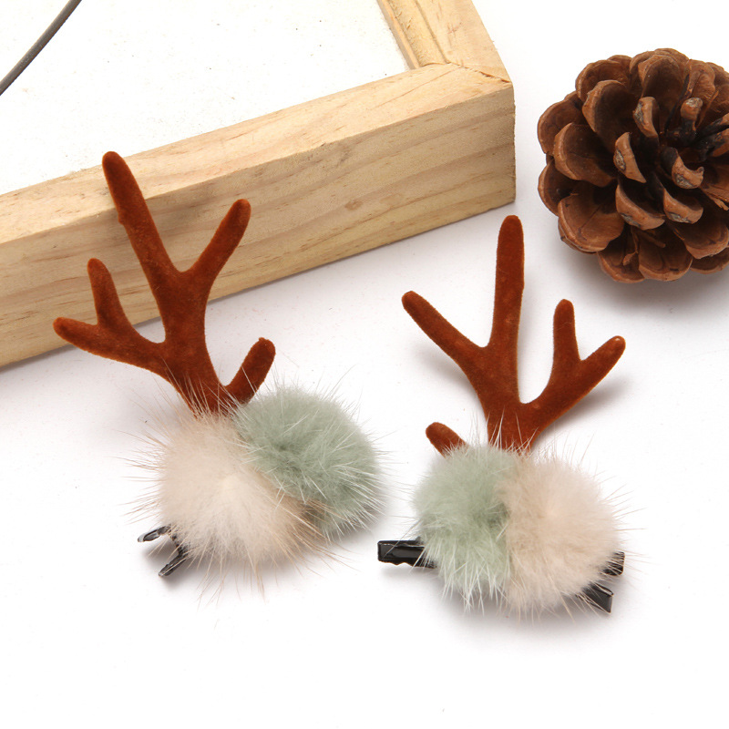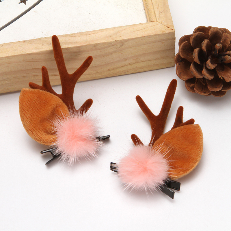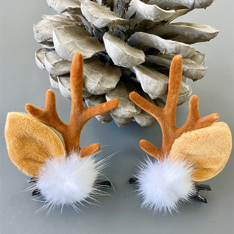 antlers mink hair with ears bleach color (brown antlers)