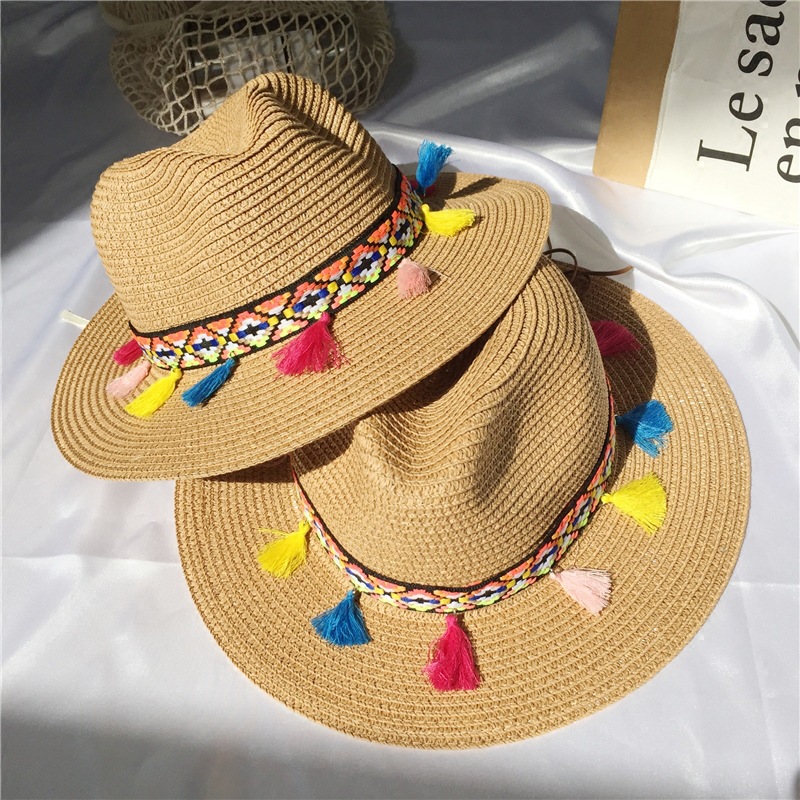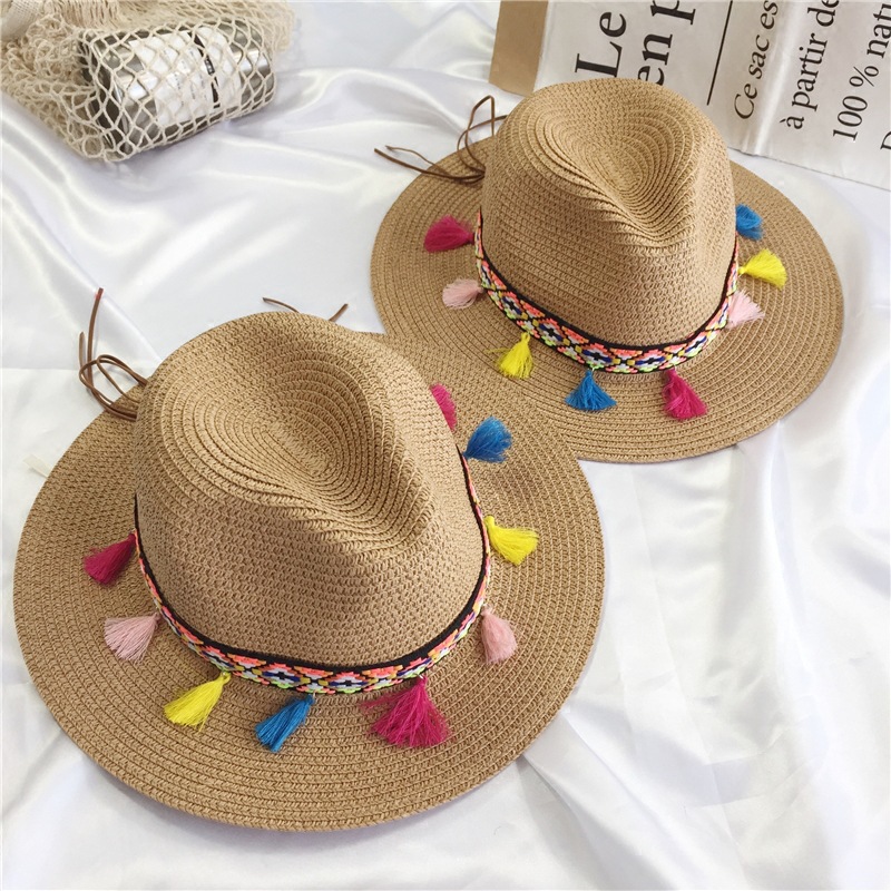 summer sun hat female travel ethnic style tassel straw hat korean style sun hat beach sun hat top hat trendy female
