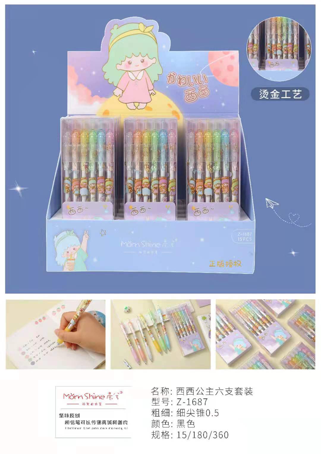 morning stationery xixi princess press gel pen little girl bronzing printing fine pointed cone pen head beating water pen