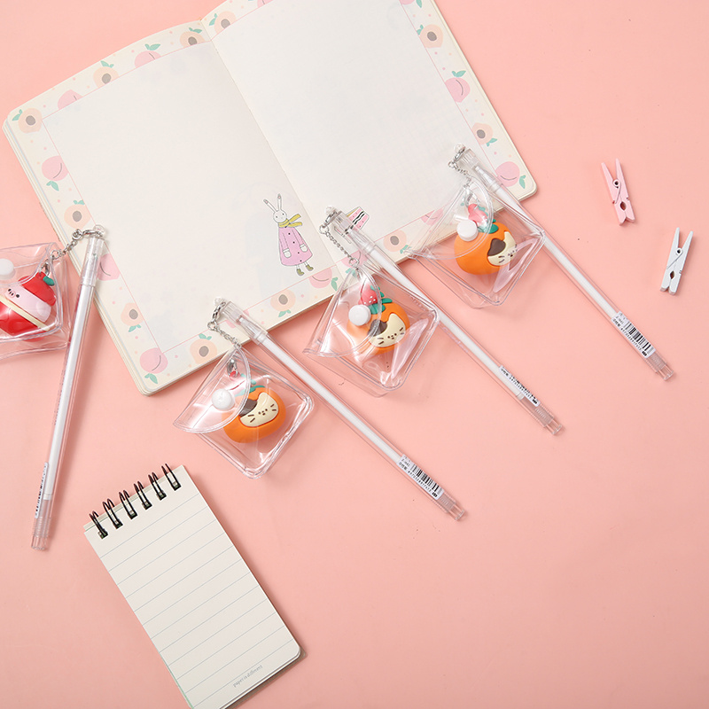 chenxi stationery creative fruit girl walking bag pendant gel pen cute girl ins style 0.5 black student