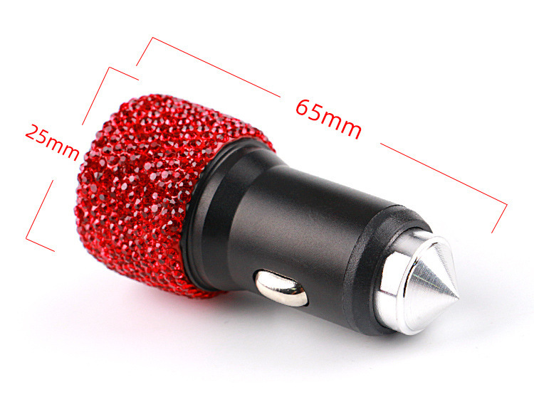 cross-border e-commerce diamond-embedded car safety hammer double usb charger diamond car cigarette lighter usb diamond-embedded charger