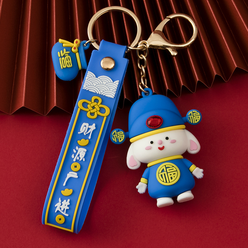 New Rabbit Year Keychain Tang Suit Rabbit Pendant Chinese Zodiac Sign of Rabbit Fortune Rabbit Soft Rubber Doll Cars and Bags Hanging Ornaments