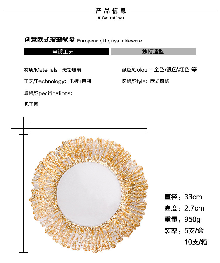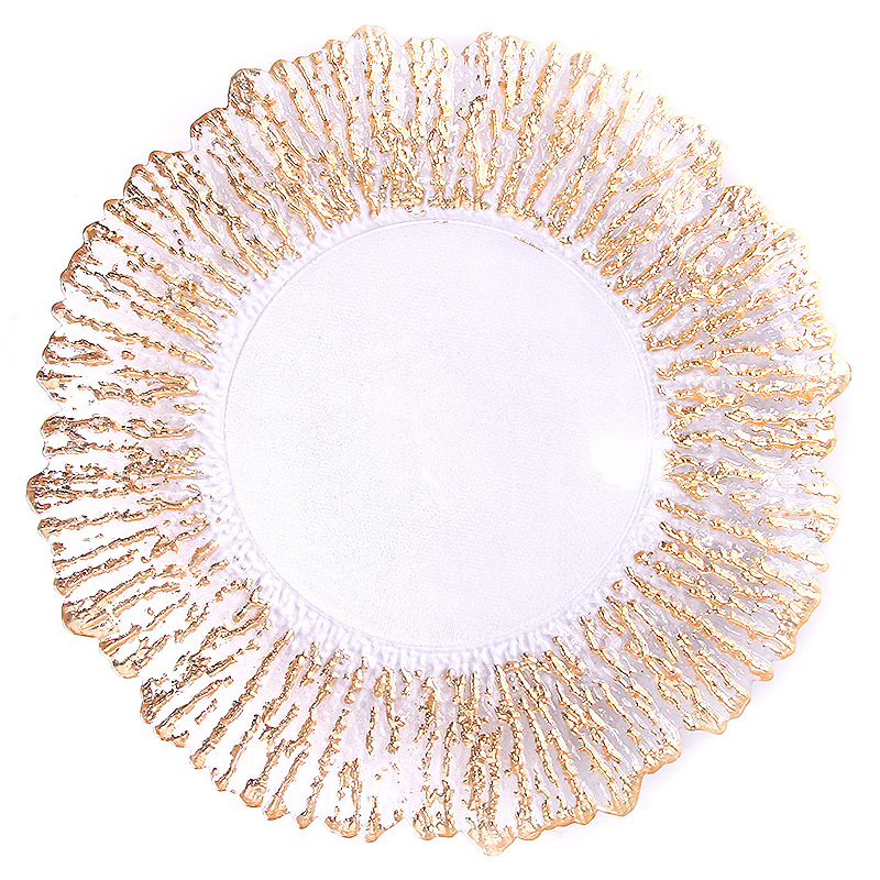 European Crystal Glass Plate 12-Inch Creative Tree Pattern Glass Fruit Plate Electroplated Gold Silver Tray Foreign Trade