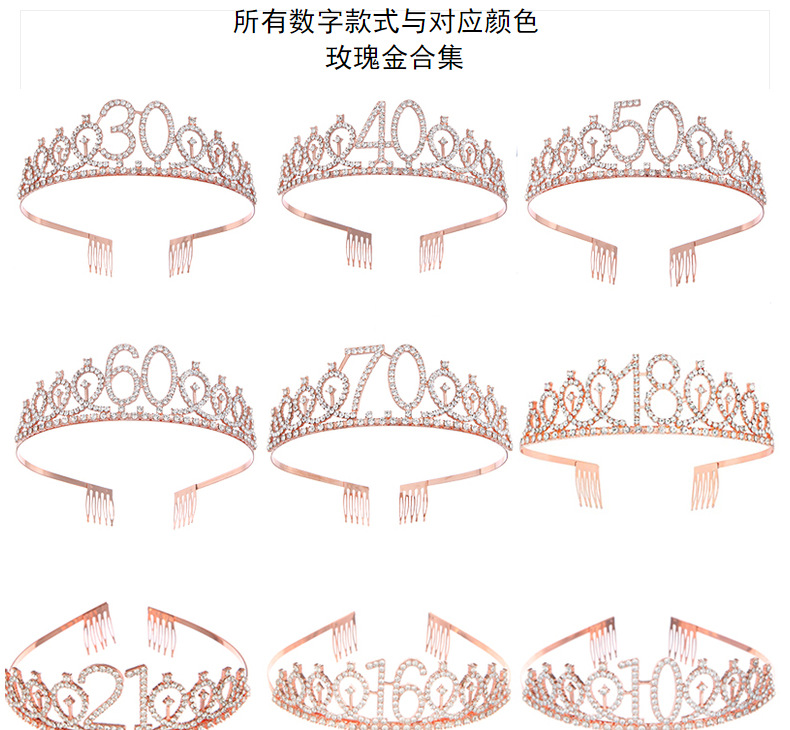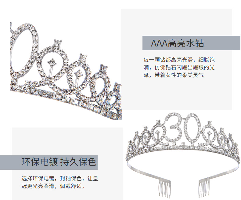 european and american fashion alloy digital crown hair clasp rhinestone birthday crown headband bachelor party dance hairware
