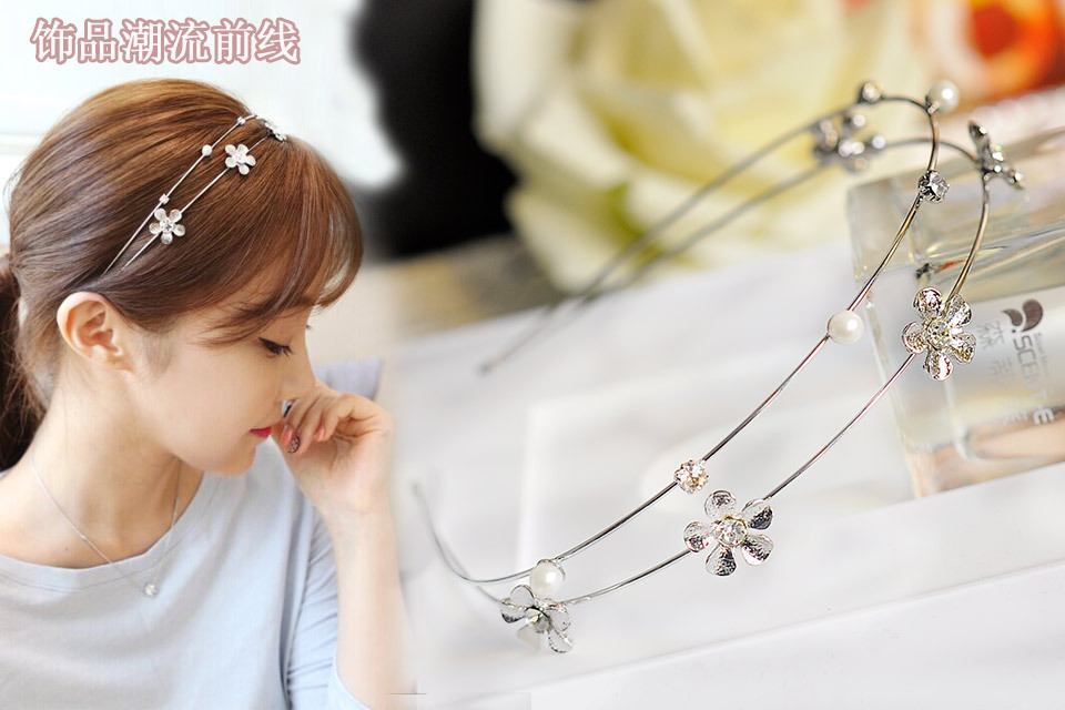 korean simple hair accessories headdress sweet wide-brimmed rhinestone hairpin headband diamond-embedded double-layer headband japanese and korean jewelry