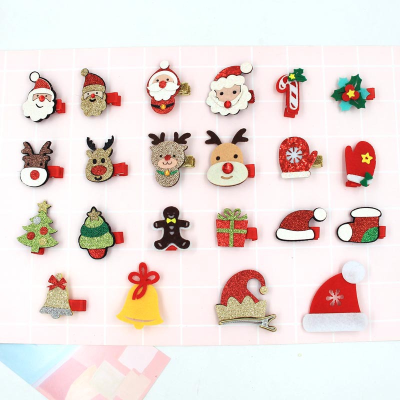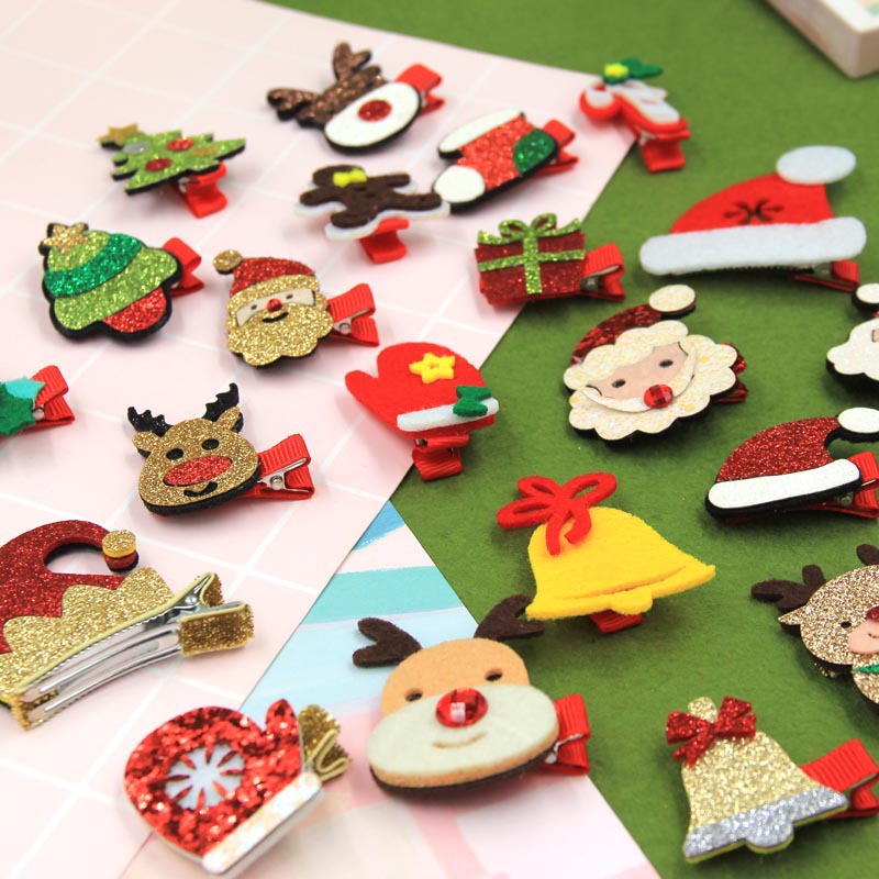 christmas cartoon children hair accessories gold powder santa claus christmas tree deer head cute baby full cloth wrapper barrettes