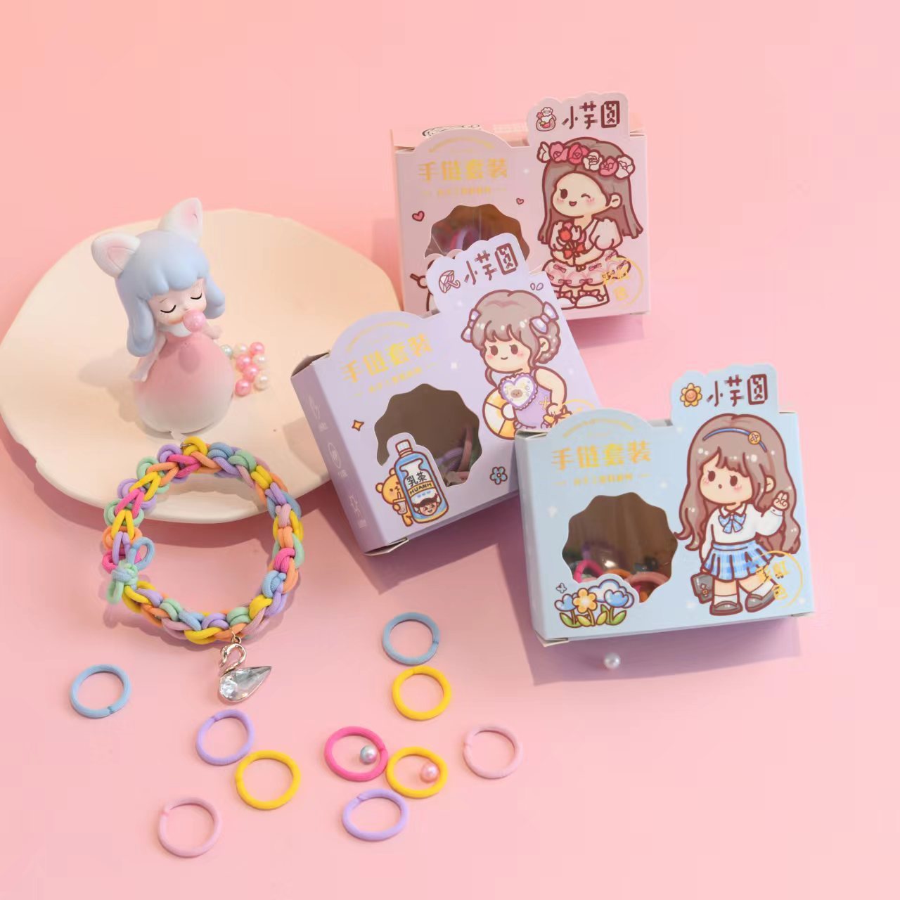Chenxi Stationery Small Taro Ball DIY Hand-Knitted Accessory Bracelet Set Couple Hair Rope Fishtail Head Rope Bracelet
