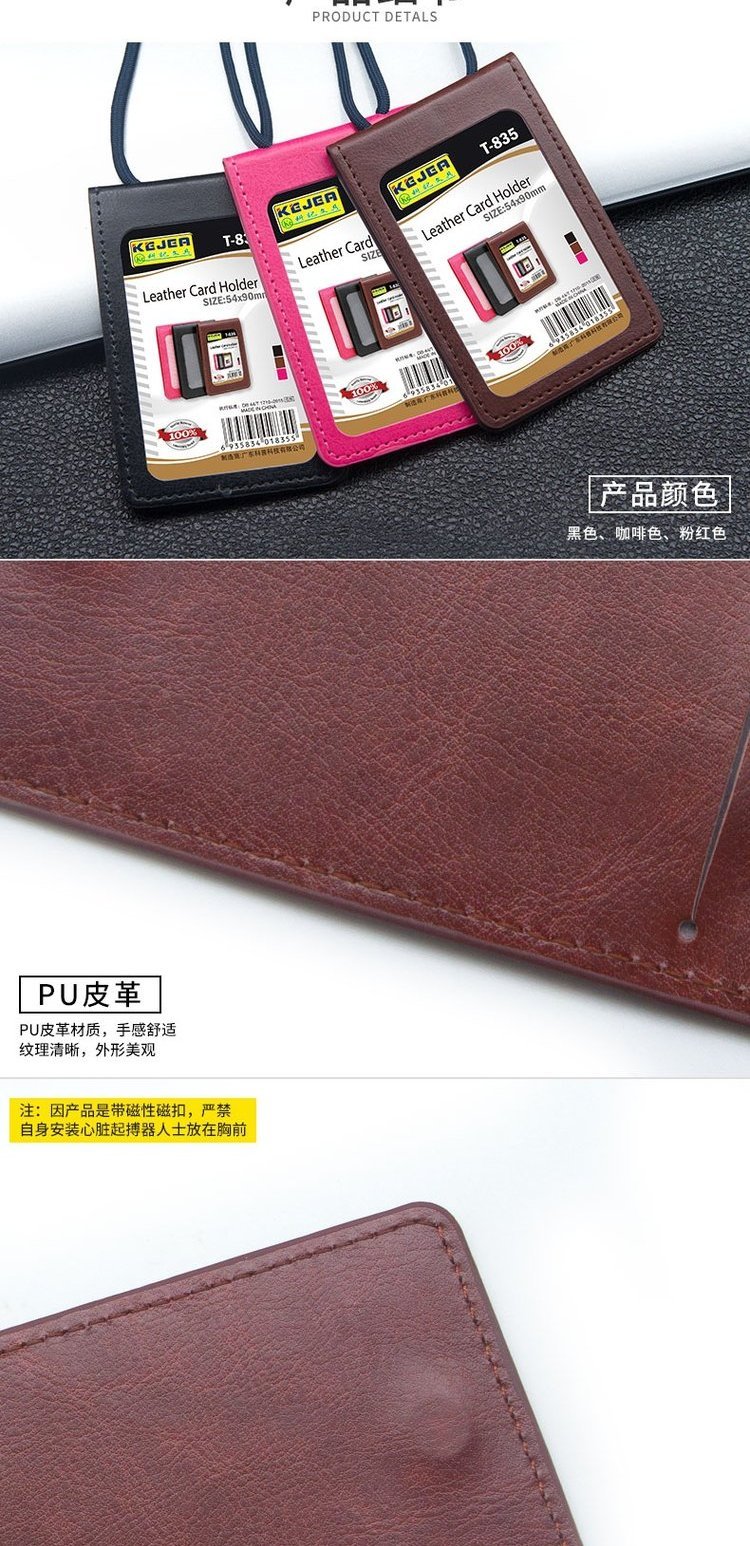 kejea leather card holder work permit with lanyard leather work permit name tag factory card work card certificate work badge