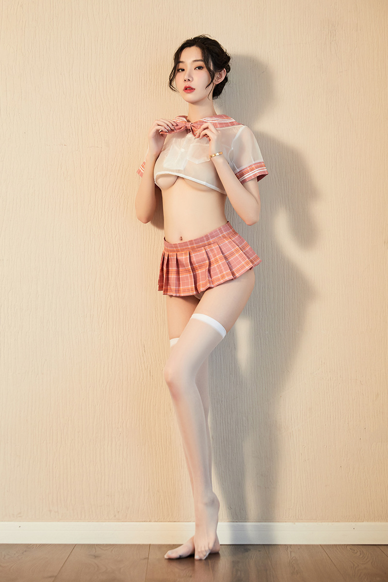white top + pink plaid (excluding socks): free size