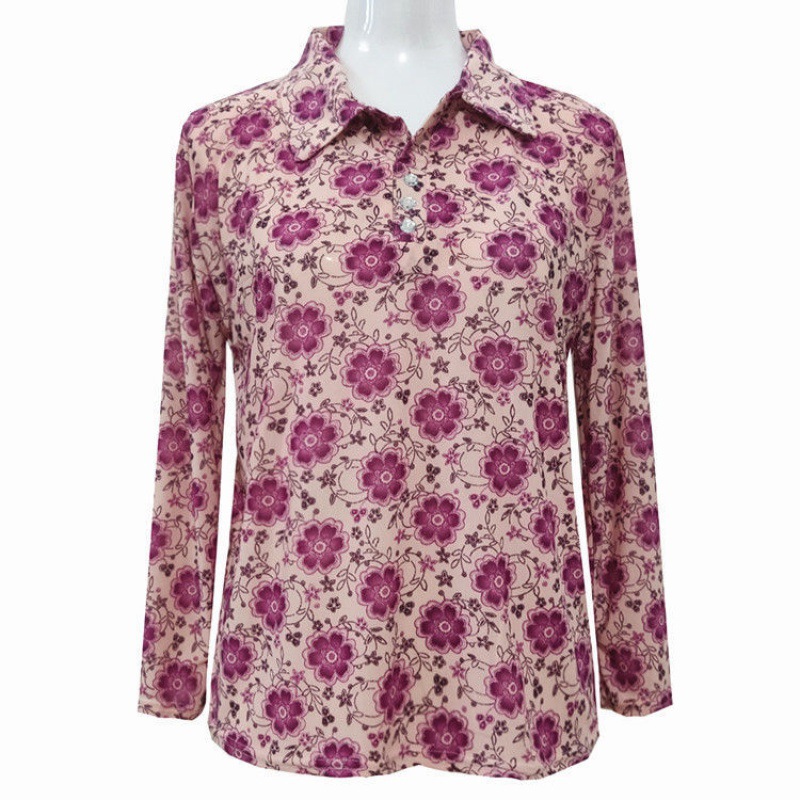 spring and autumn new wholesale stall middle-aged and elderly women's ice silk lapel t-shirt rural mother's top long sleeve wholesale