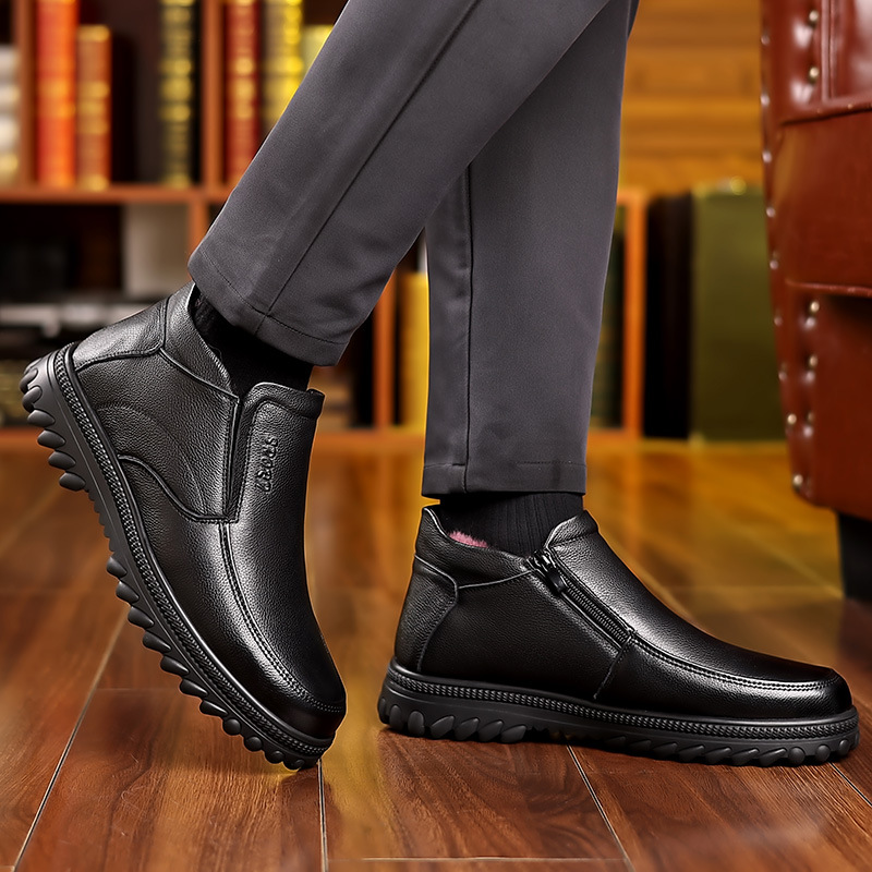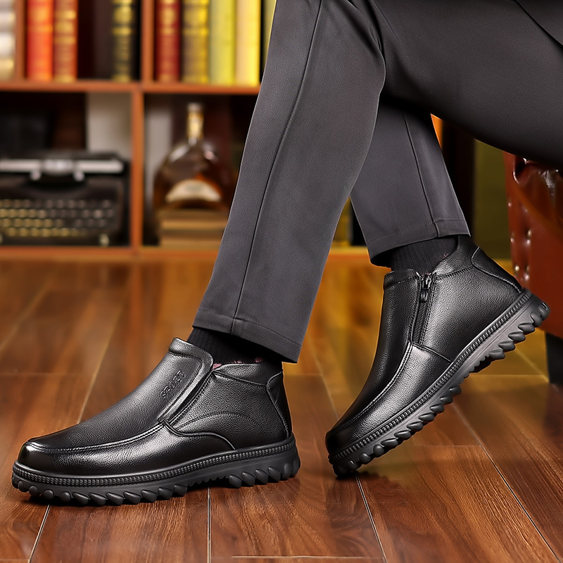New Cotton Shoes Men's Oversized Men's Shoes Genuine Leather Warm Dad Non-Slip Real Wool Fur Snow Boots Men's 45