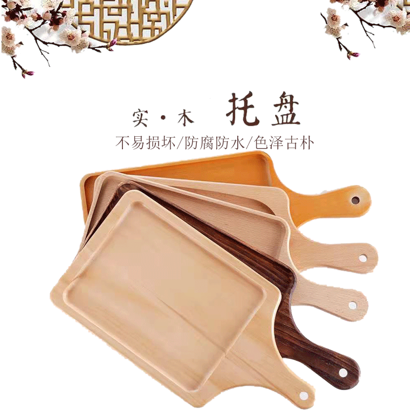 Solid Wood Cutlery Tray Japanese Rectangular Pizza Sushi Beech Tray Coffee Pastry Snack Tray with Logo