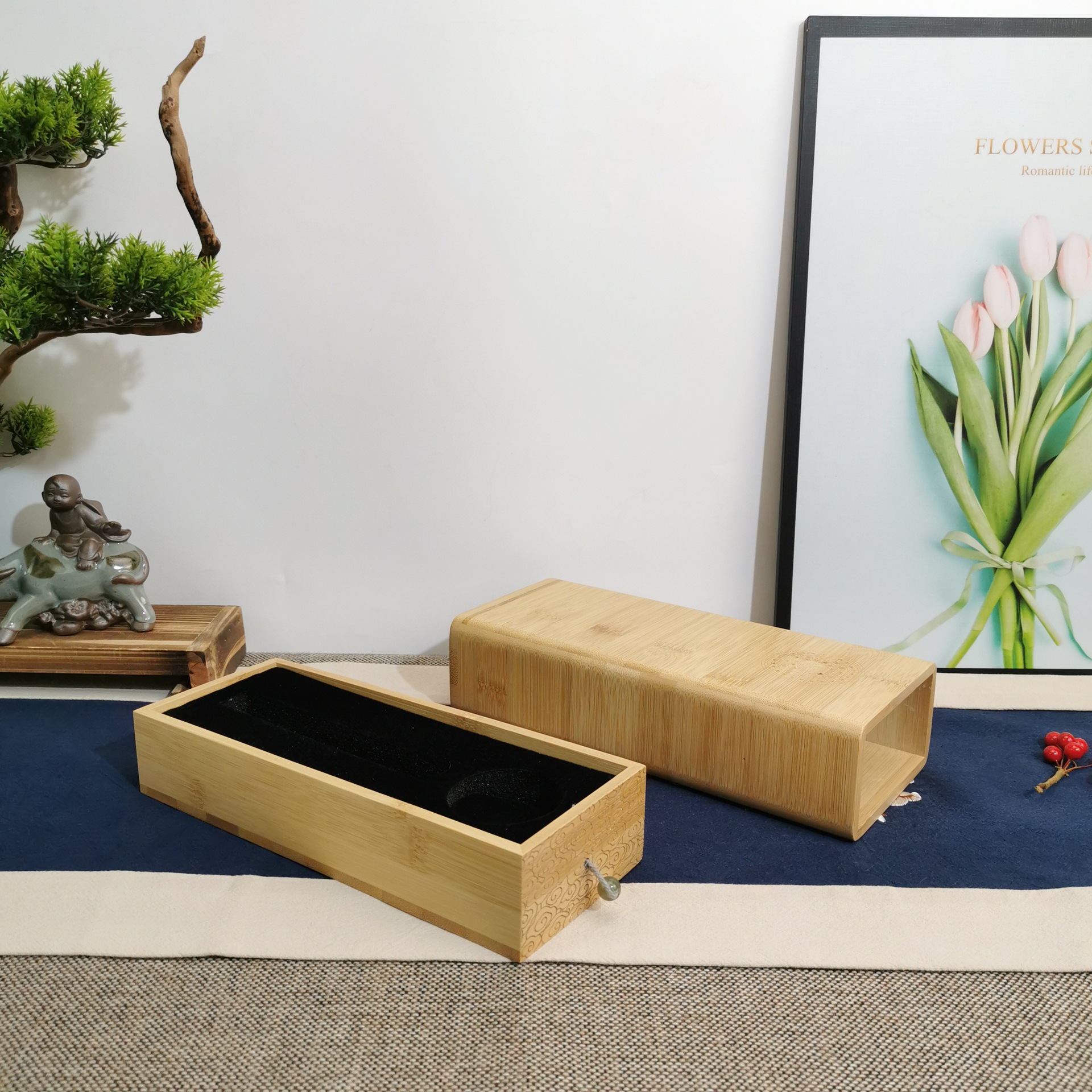 Bamboo Wooden Box Single Cup Pot Tureen Porcelain Pull Jewelry Crystal Birthday Gift Storage Gift Box Packing Box