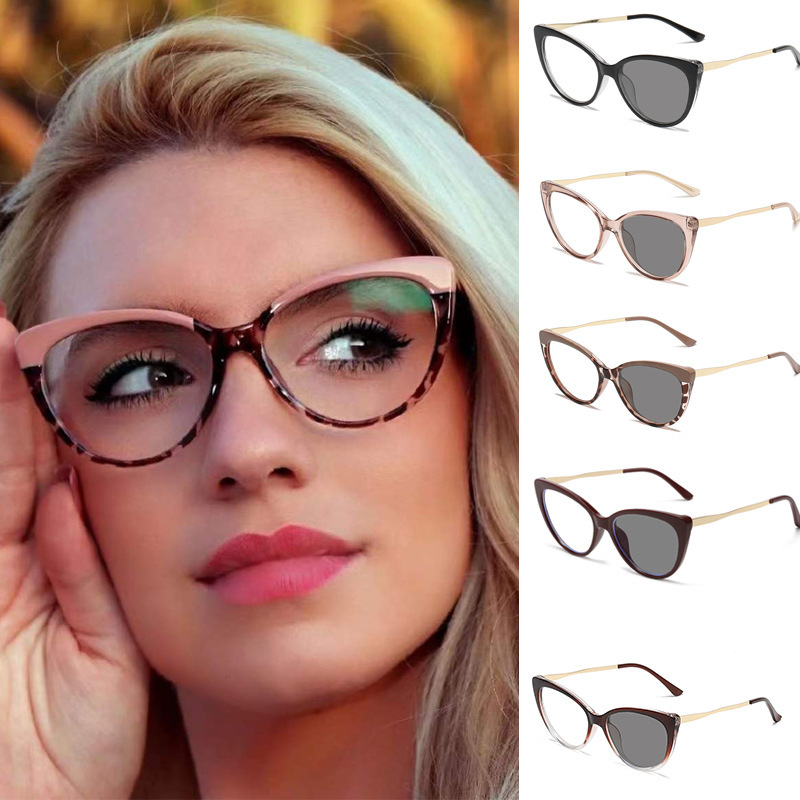 2022 Cross-Border Fashion Triangle Cat Eye Sunglasses Personality Wear Concave Shape Sunglasses Photolight Photochromic Sunglasses