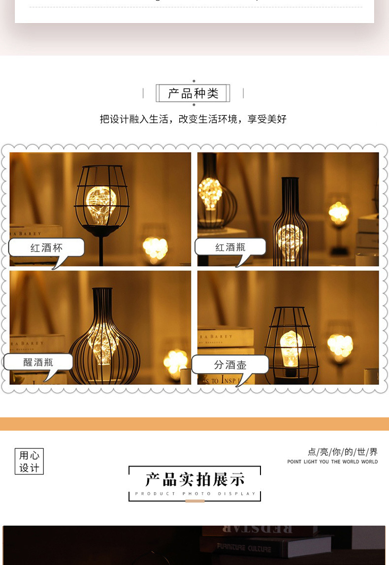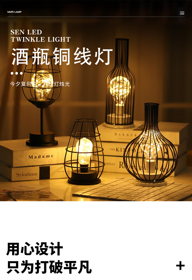 custom led iron small night lamp nordic style creative bedroom decoration atmosphere light red wine bottle shape usb desk color light