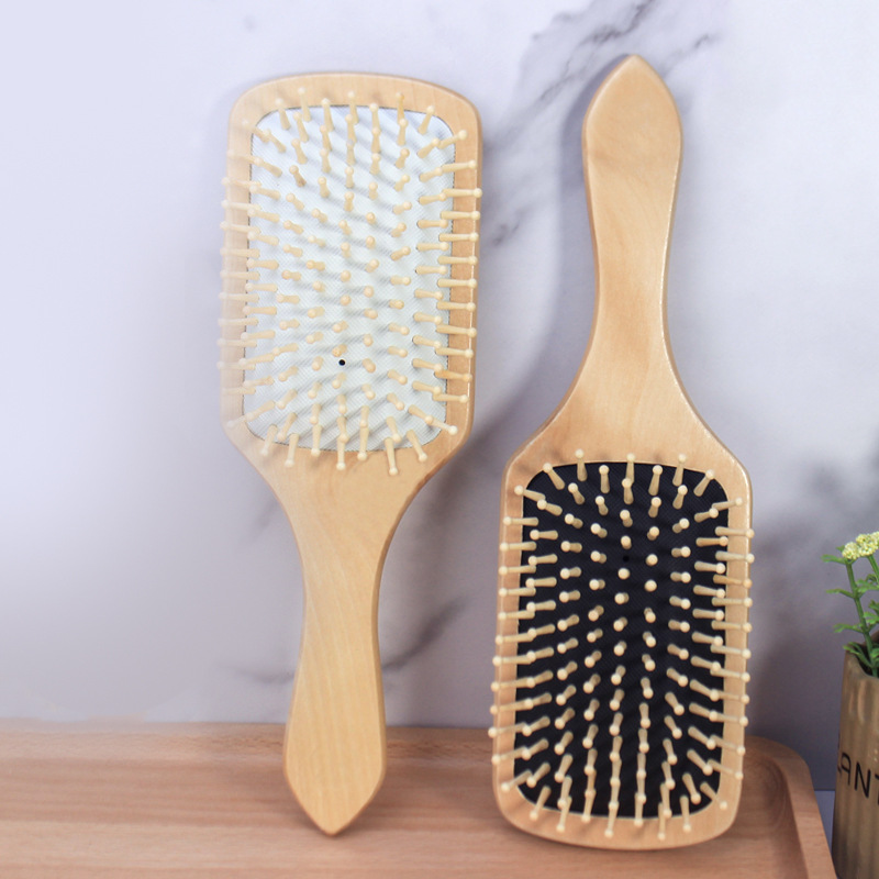 Cross-Border European and American Natural Wooden Comb Square Hezhu Airbag Comb Hair Curls Wooden Comb Straight Hair Massage Comb