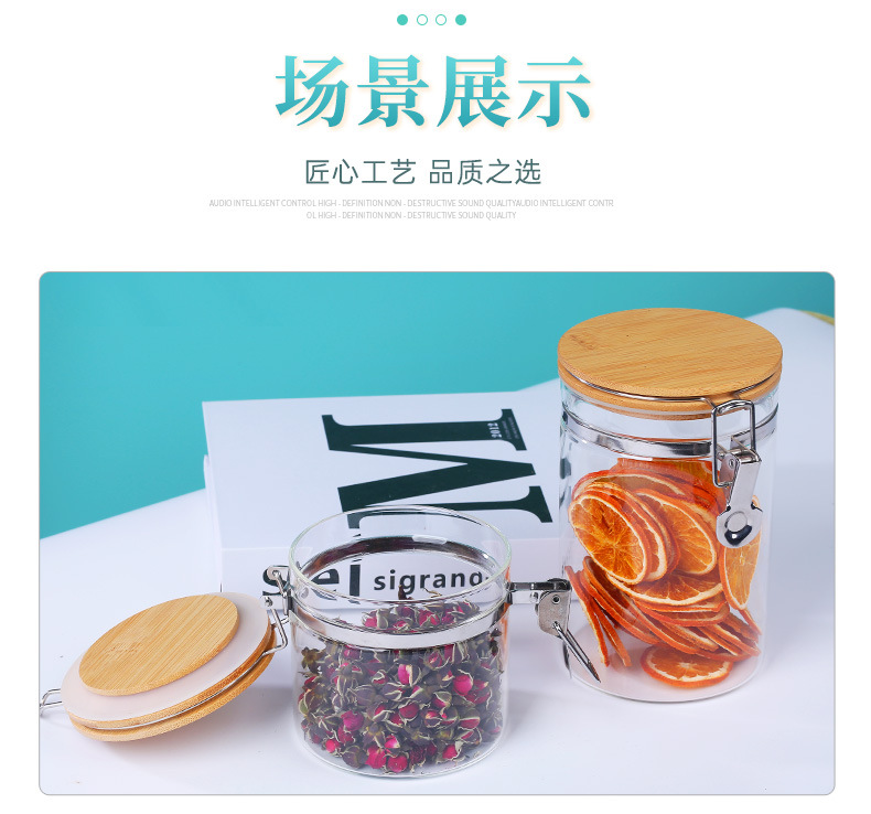 stainless steel buckle glass jar kitchen storage jar household glass sealed jar coarse grains tea storage jar storage tank
