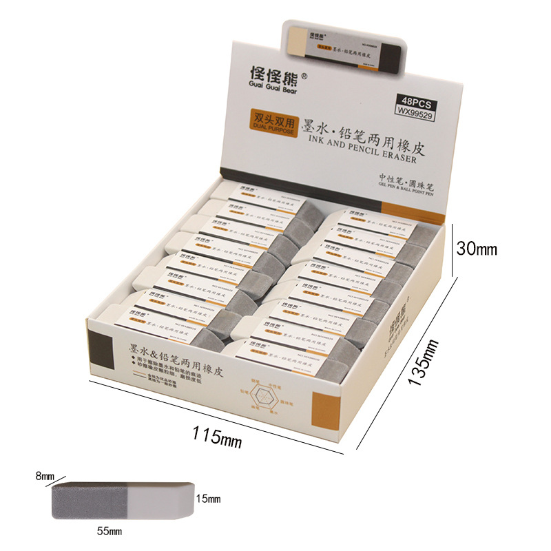 The eraser contains fine sandpaper, which removes the surface writing by rubbing off the paper's surface, achieving the erasing effect. Please use it with moderate pressure to avoid tearing the paper. It is not suitable for 70g or thinner paper. Please be cautious when purchasing!