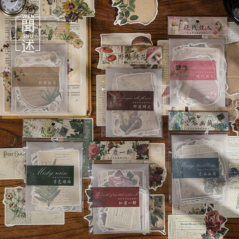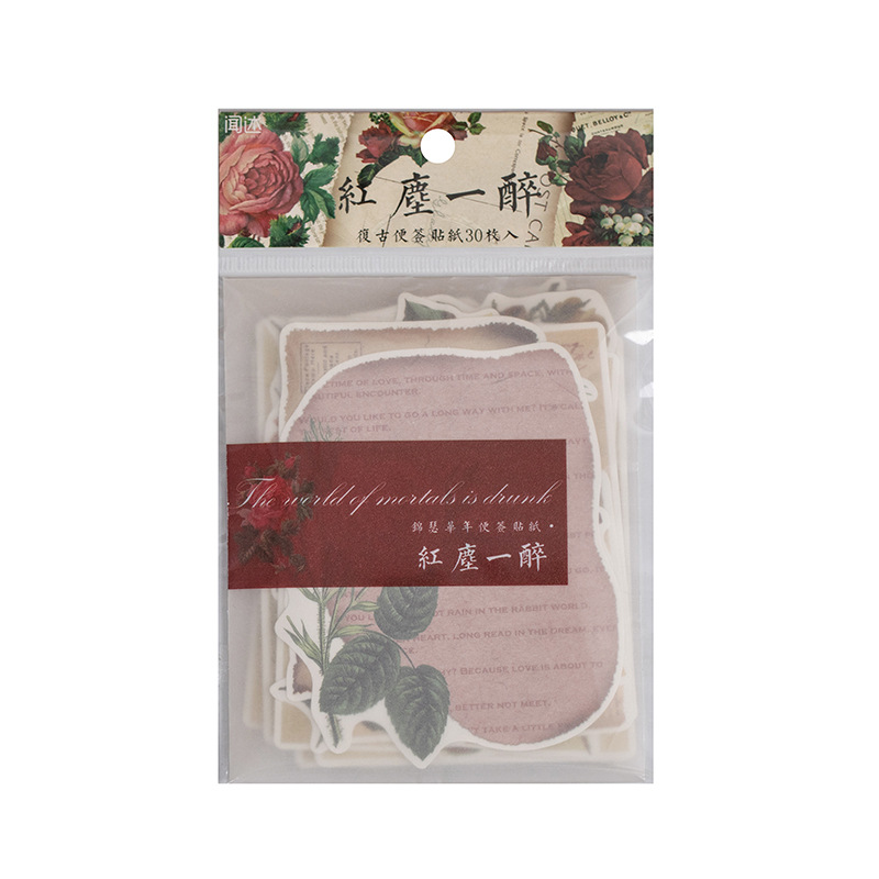 Sticker Package Jinse Hua Nian Series Retro Artistic Notebook Flower Material Stickers 30 Pieces
