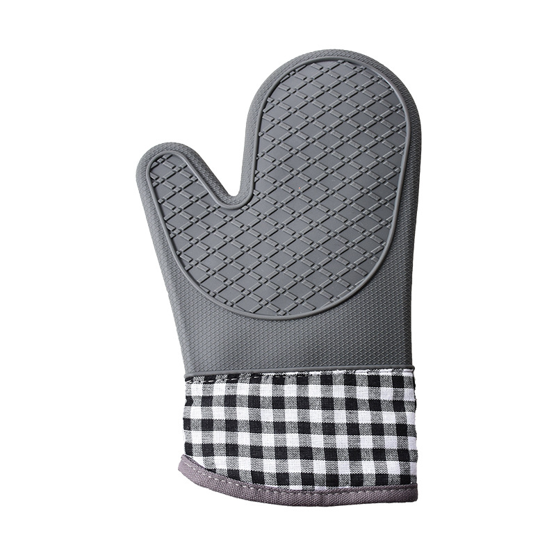 new checked cloth beige dotted short gloves baking microwave heat insulation anti-scald oven universal two finger cotton gloves