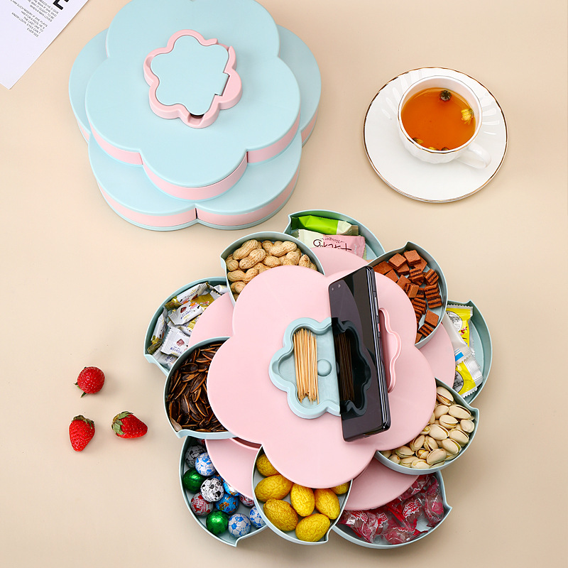 double transparent rotating fruit plate-blue