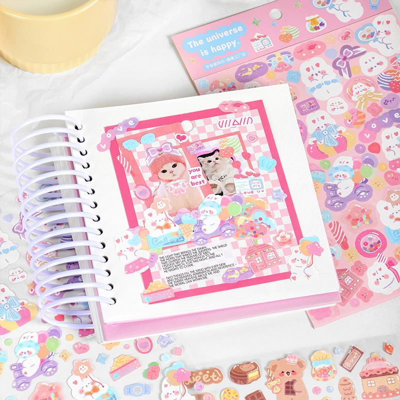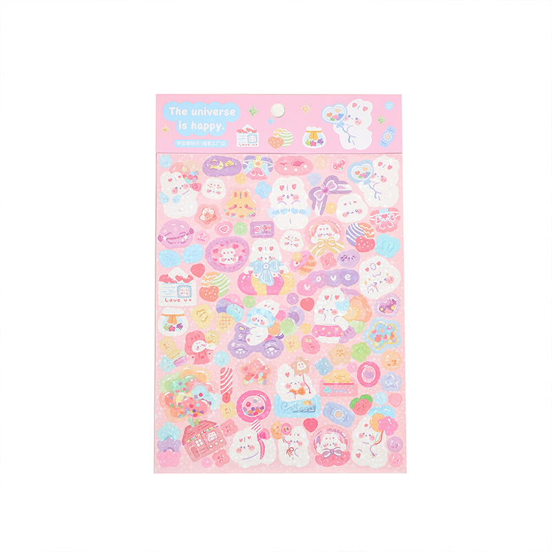 Star Flash Stickers Happy Universe Series Cartoon Animal Journal Material Pasteup 6 Models