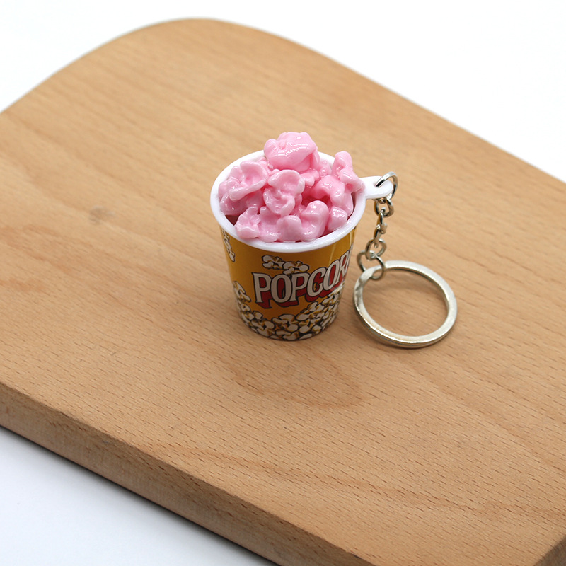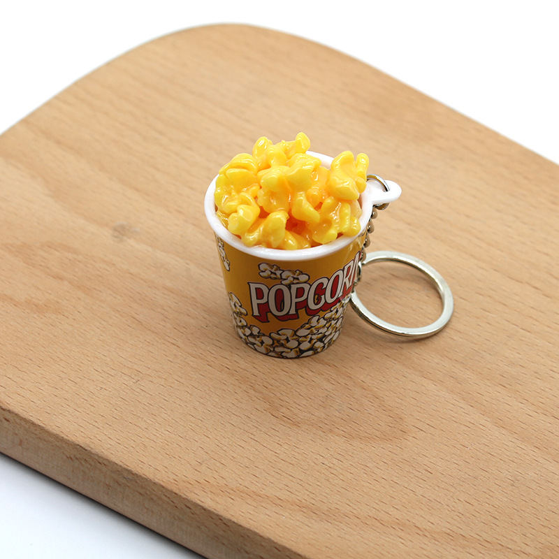 creative simulation popcorn keychain pendant mini food and play student couple ornaments exhibition cinema small gifts
