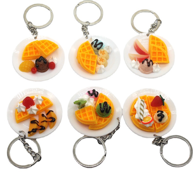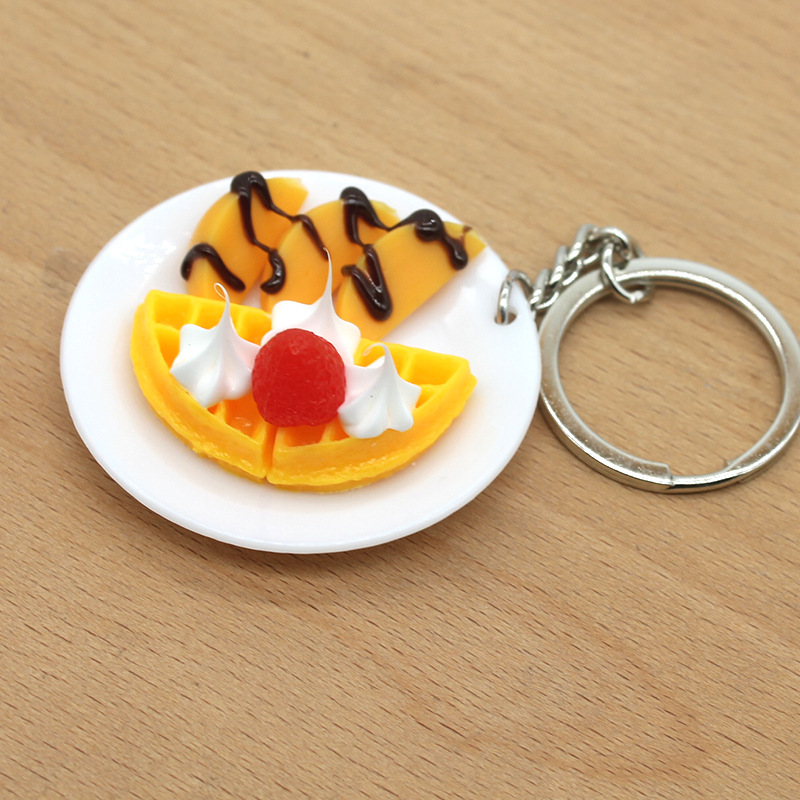creative simulation food biscuit plate keychain pendant food and play dream factory car student couple bag chain ornaments