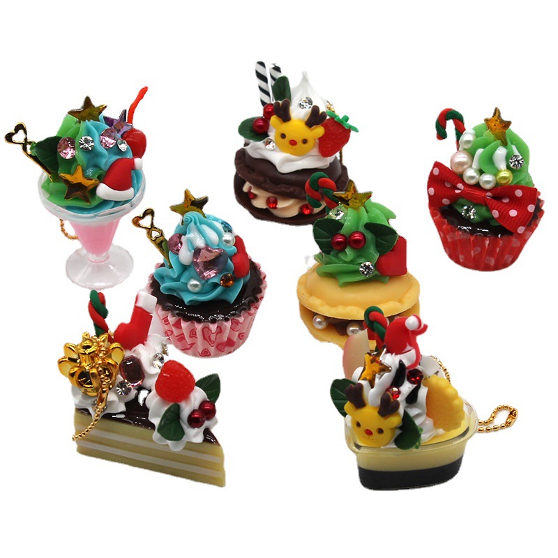 new christmas keychain pendant creative cartoon christmas tree elk ice cream cake ornament small gift