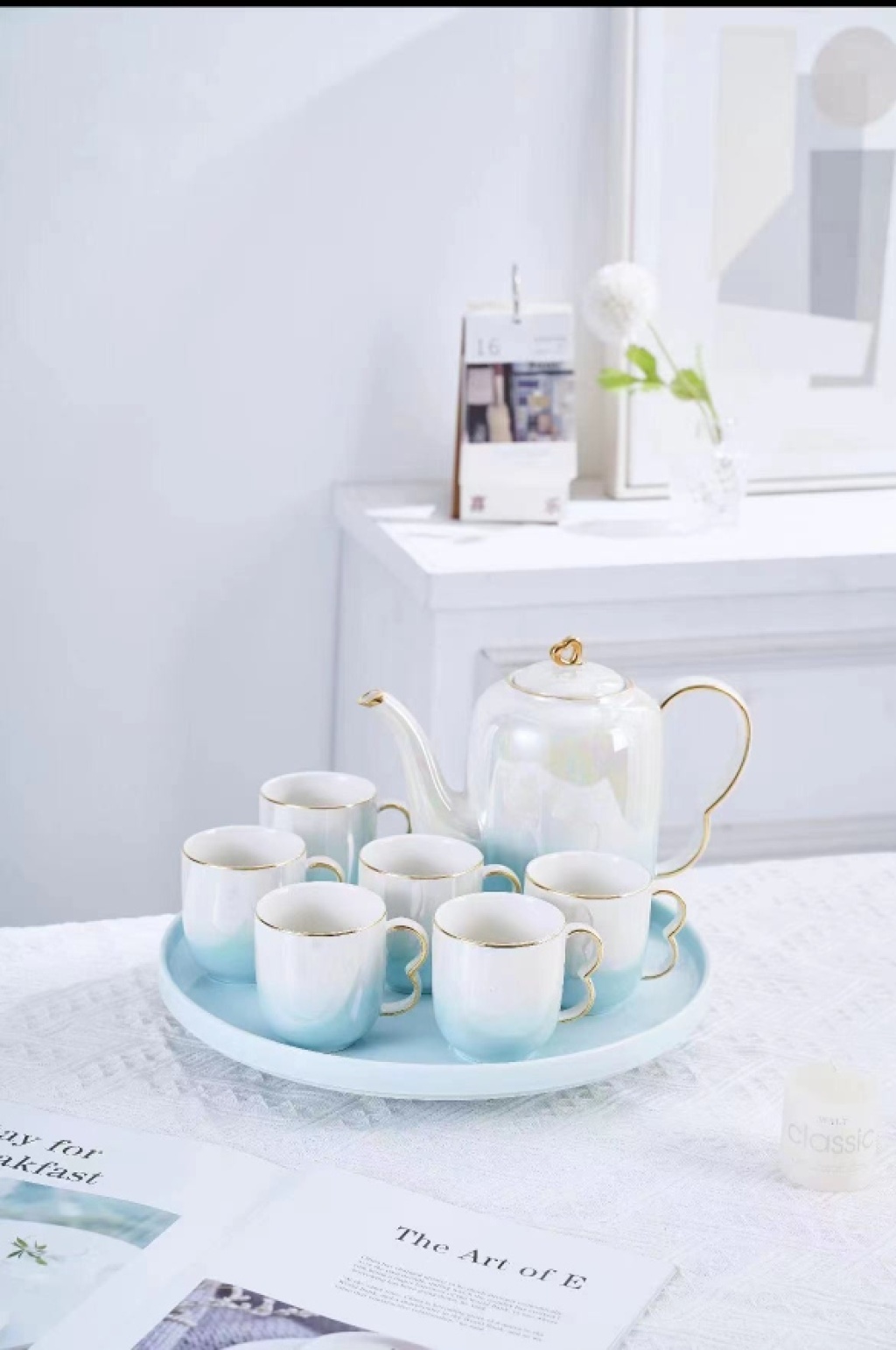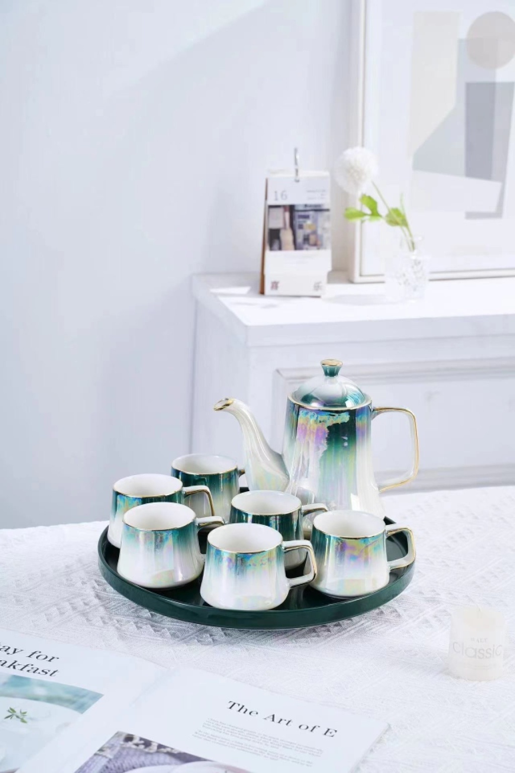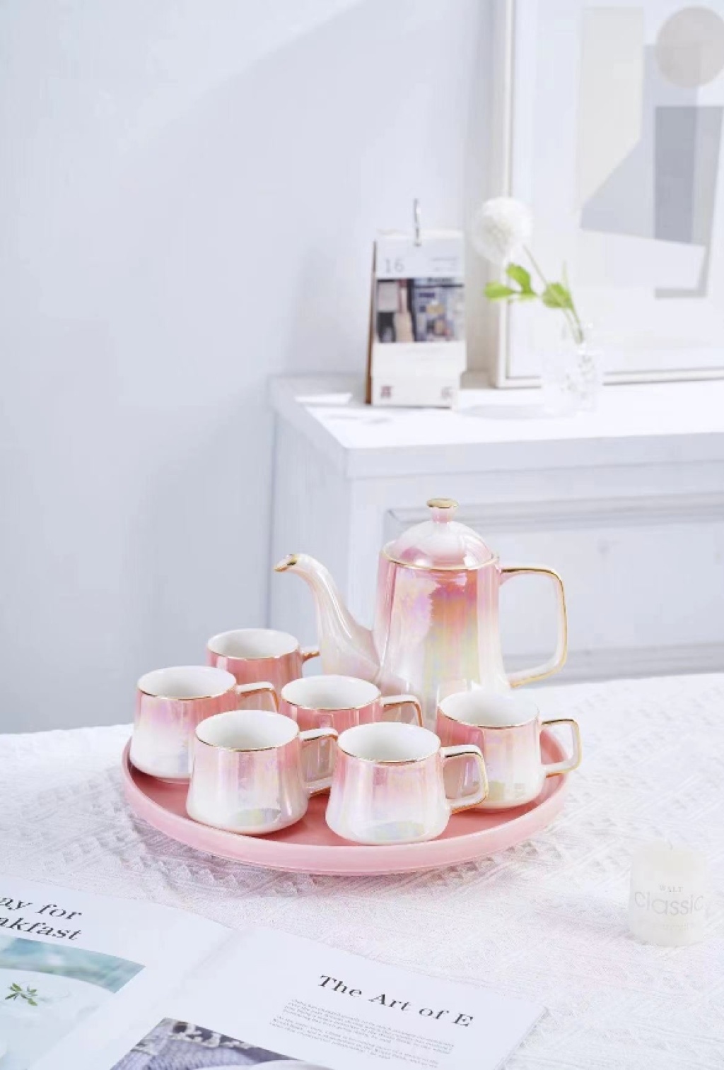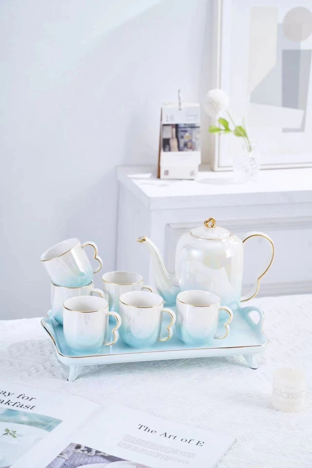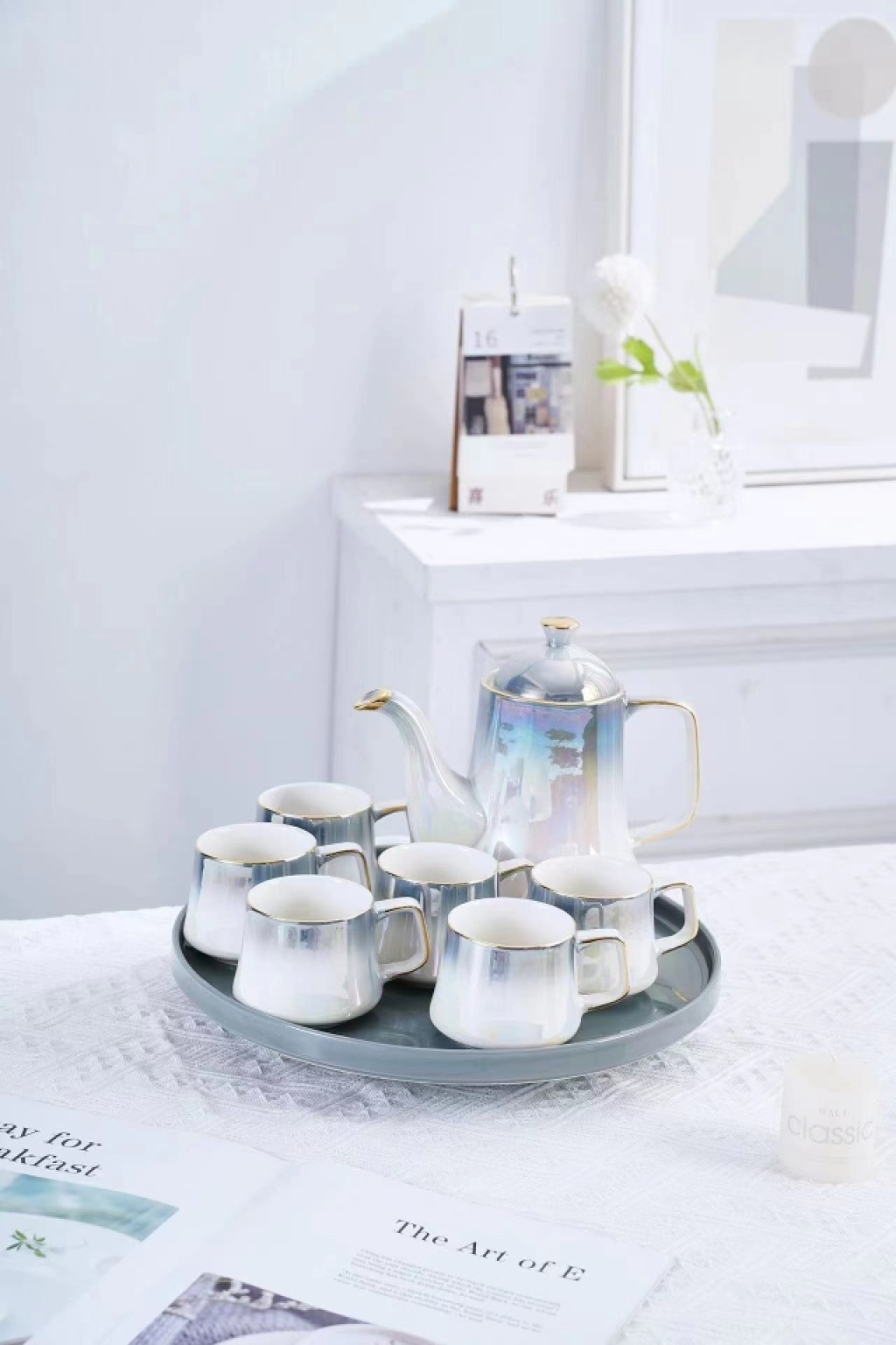 Ceramic Water Set, Glazed Ceramic Coffee Set, Coffee Cup and Saucer Set, European-style Coffee Cups, Ceramic Plates